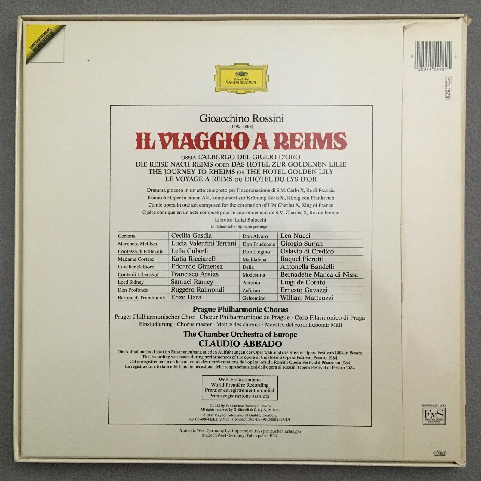 B529 Rossini il Viaggio a Reims Ricciarelli Abbado 3LP DGG 415 498-1 Digital St