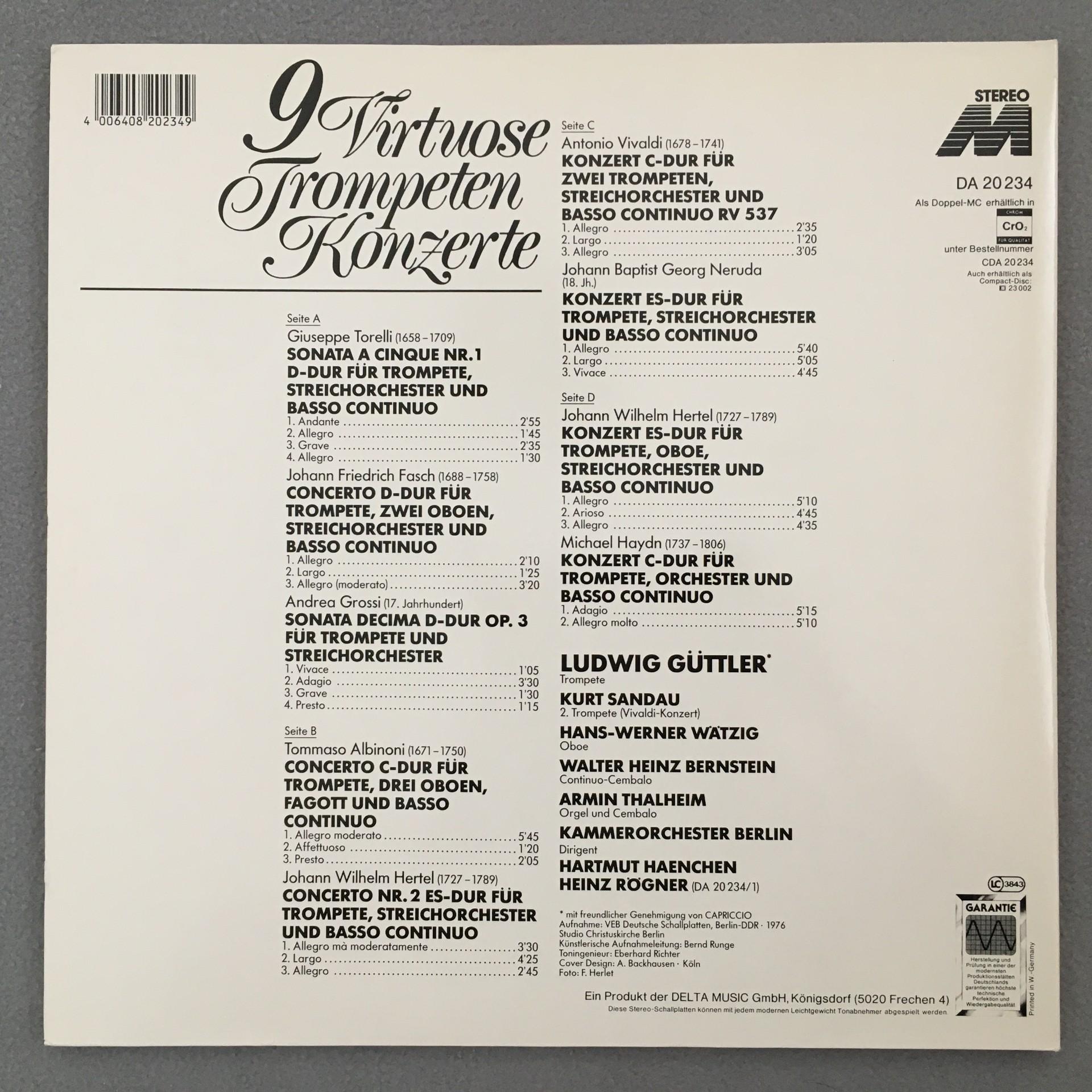 L475 9 Trumpet Concertos Torelli Vivaldi Albinoni Güttler 2LP Delta DA 20 234 St