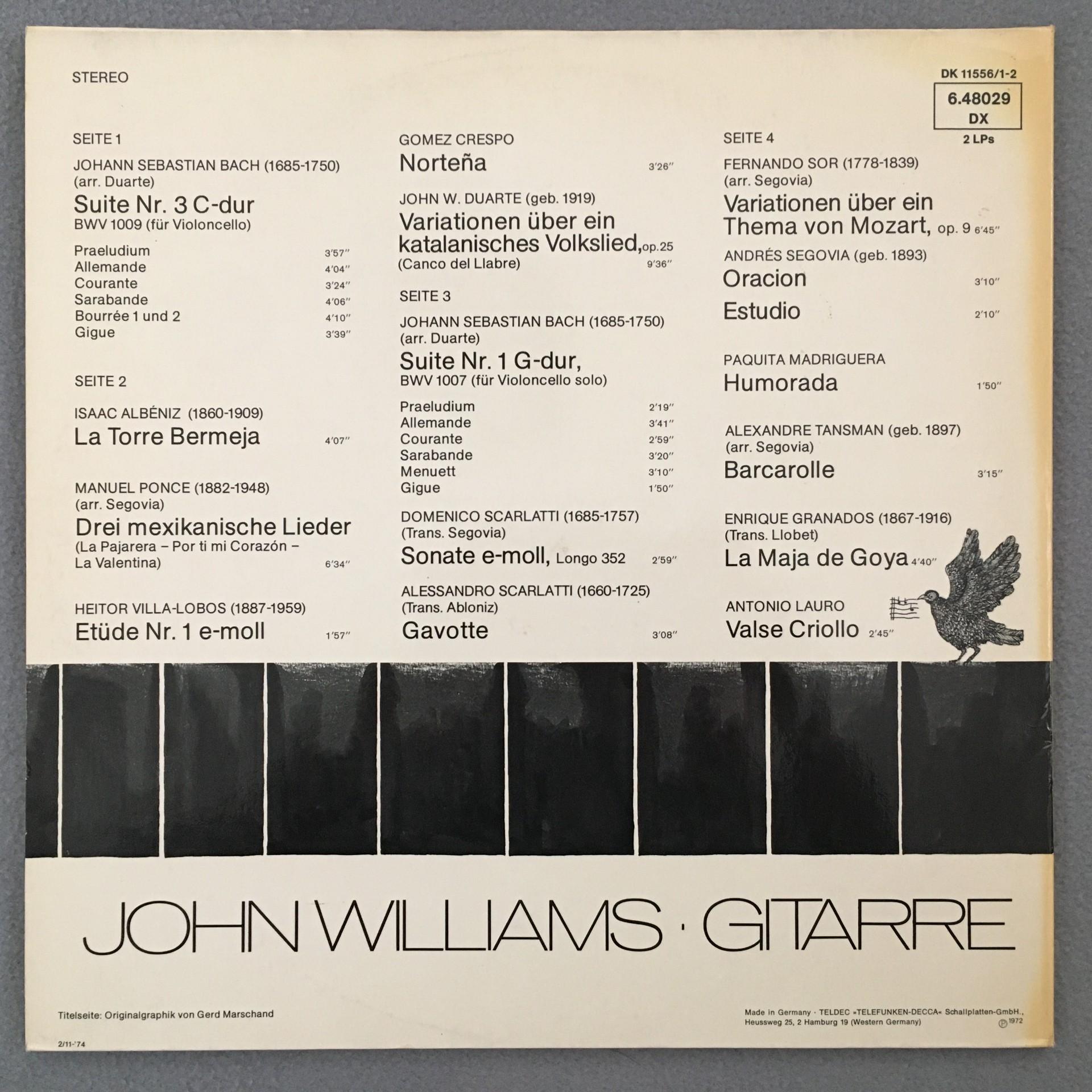 L477 Williams Guitar Bach Albeniz Villa-Lobos Scarlatti 2LP DECCA 6.48029 DX St