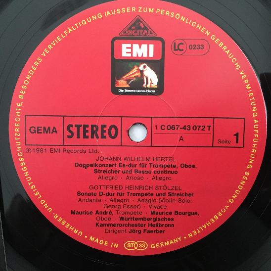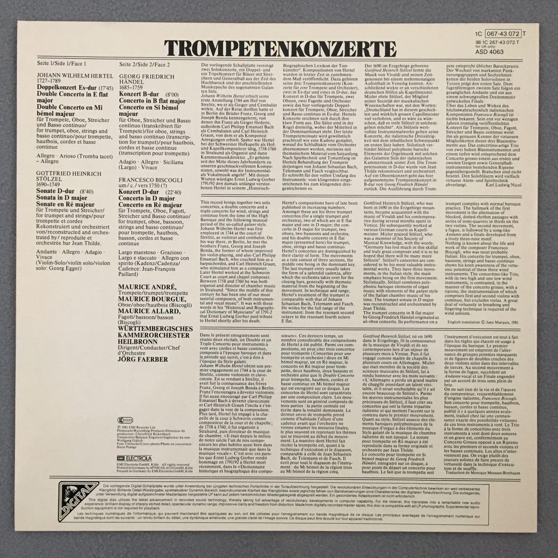 L481 Andre Trumpet Concertos Allard Faerber EMI 1C 067-43 072 Digital Stereo