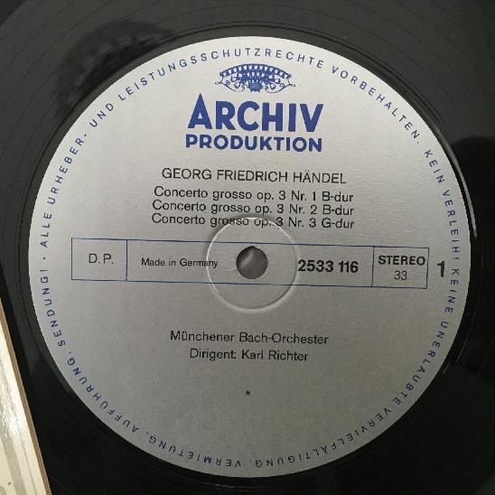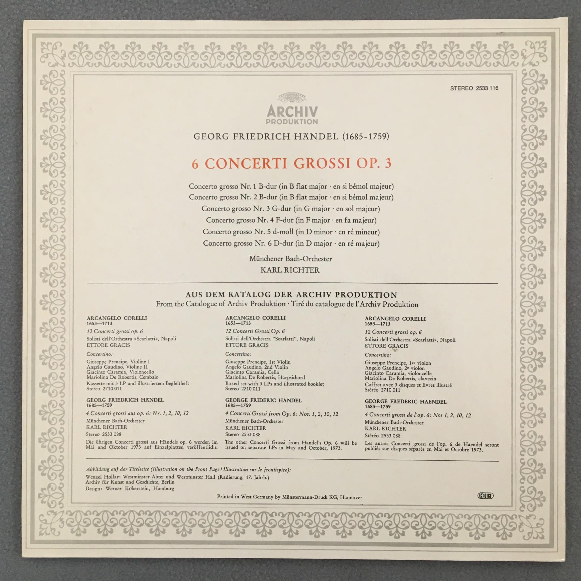 L490 Handel 6 Concerti Grossi Op.3 Richter DGG Archiv 2533 116 Stereo