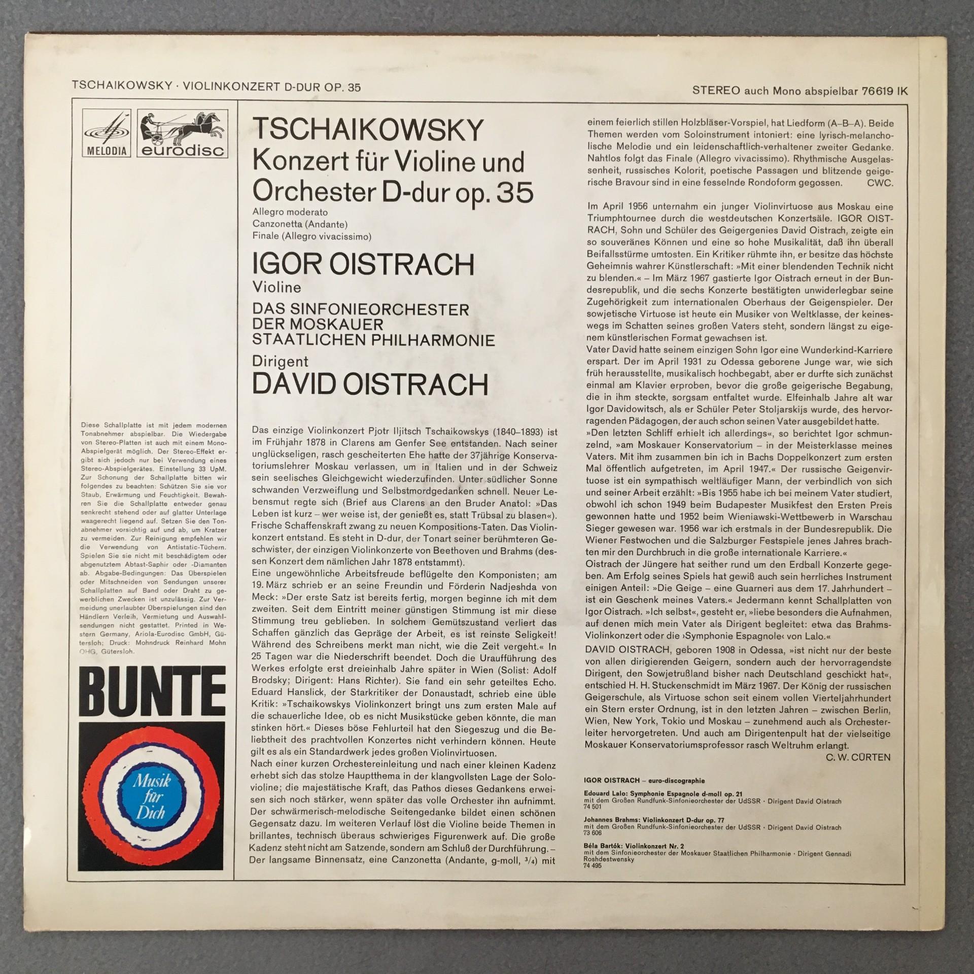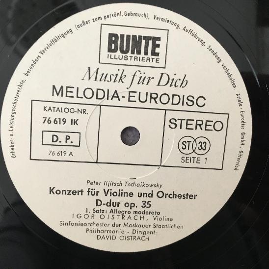 L499 Tchaikovsky Violin Concerto I. & D. Oistrakh Eurodisc 76 619 IK Stereo