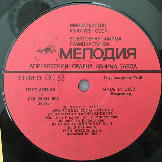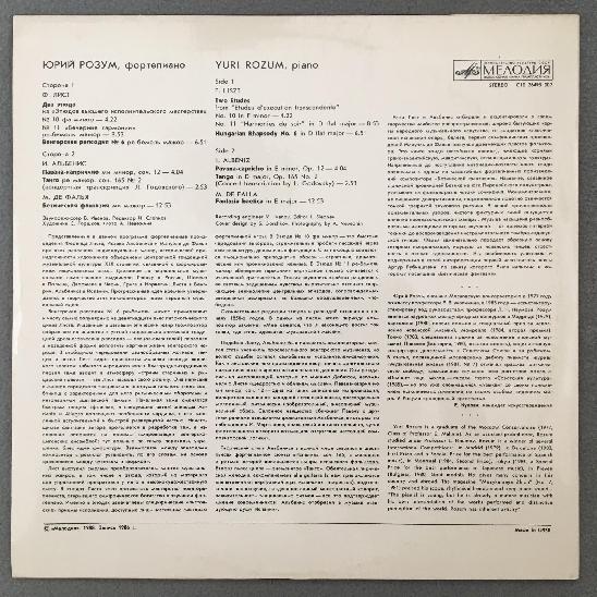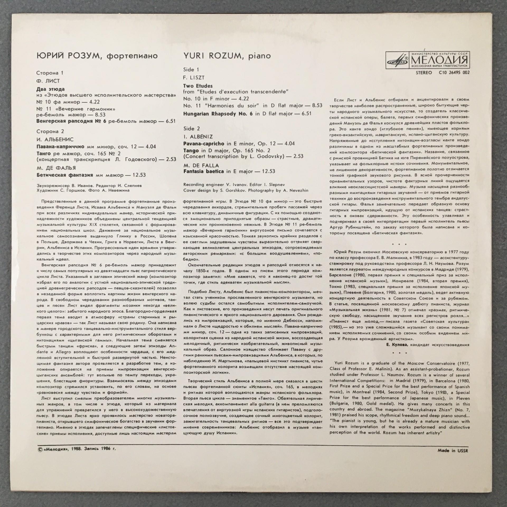 L523 Liszt Etudes De Falla Fantasy Rosum Piano Melodiya C10 26495 002 Stereo