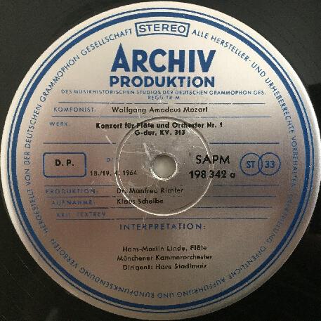 V202 Mozart Flute Concertos Linde Holliger Stadlmair DGG Archiv 198 342 Red Ster