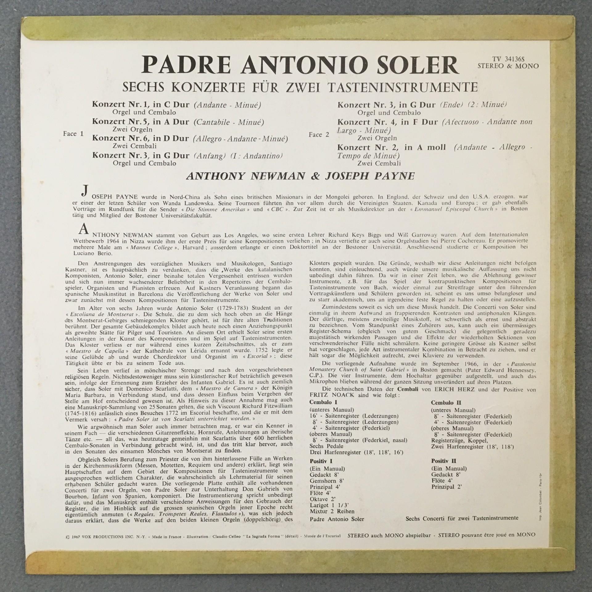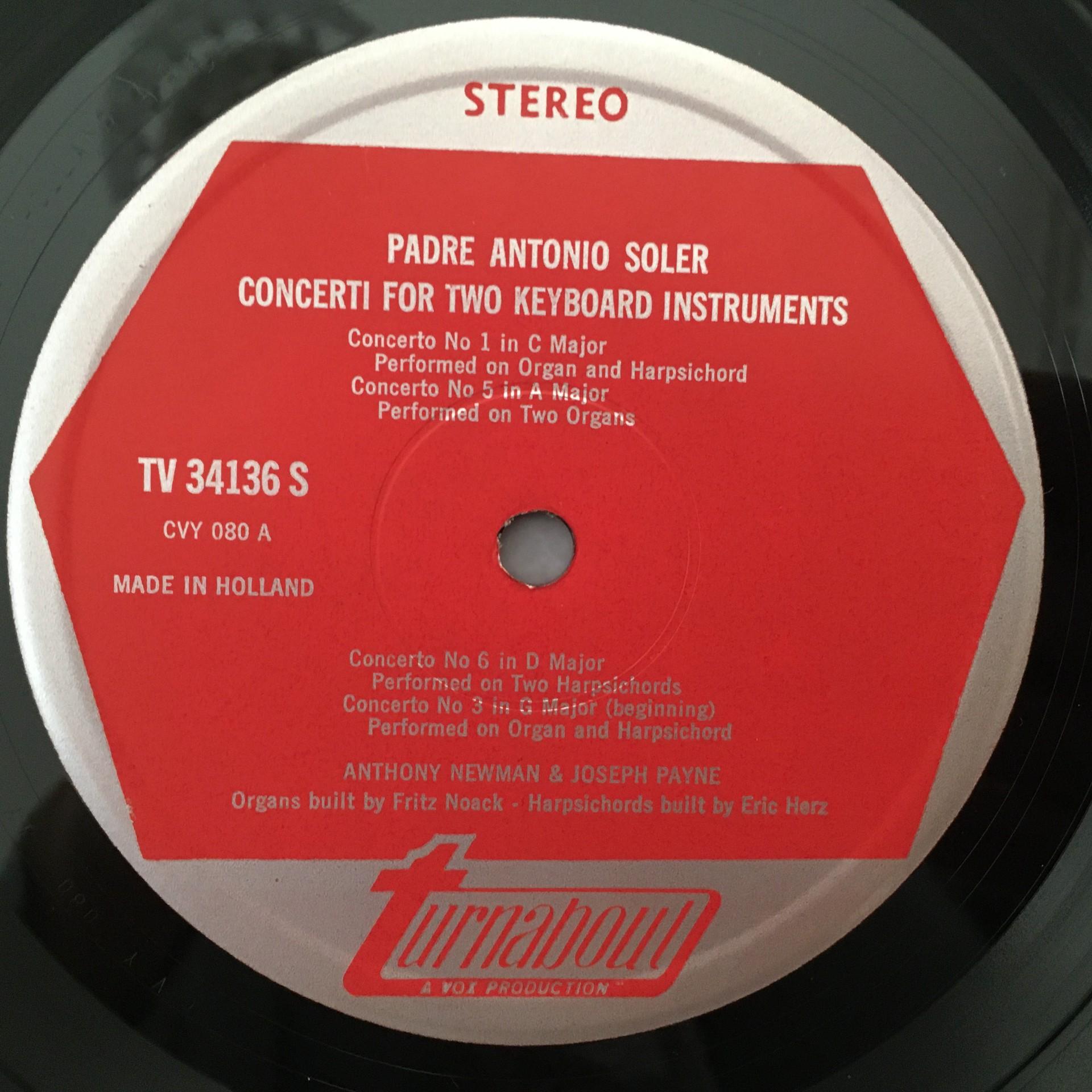 L530 Soler Concertos Newman Payne Organ Harpsichord Turnabout TV 34136S Stereo