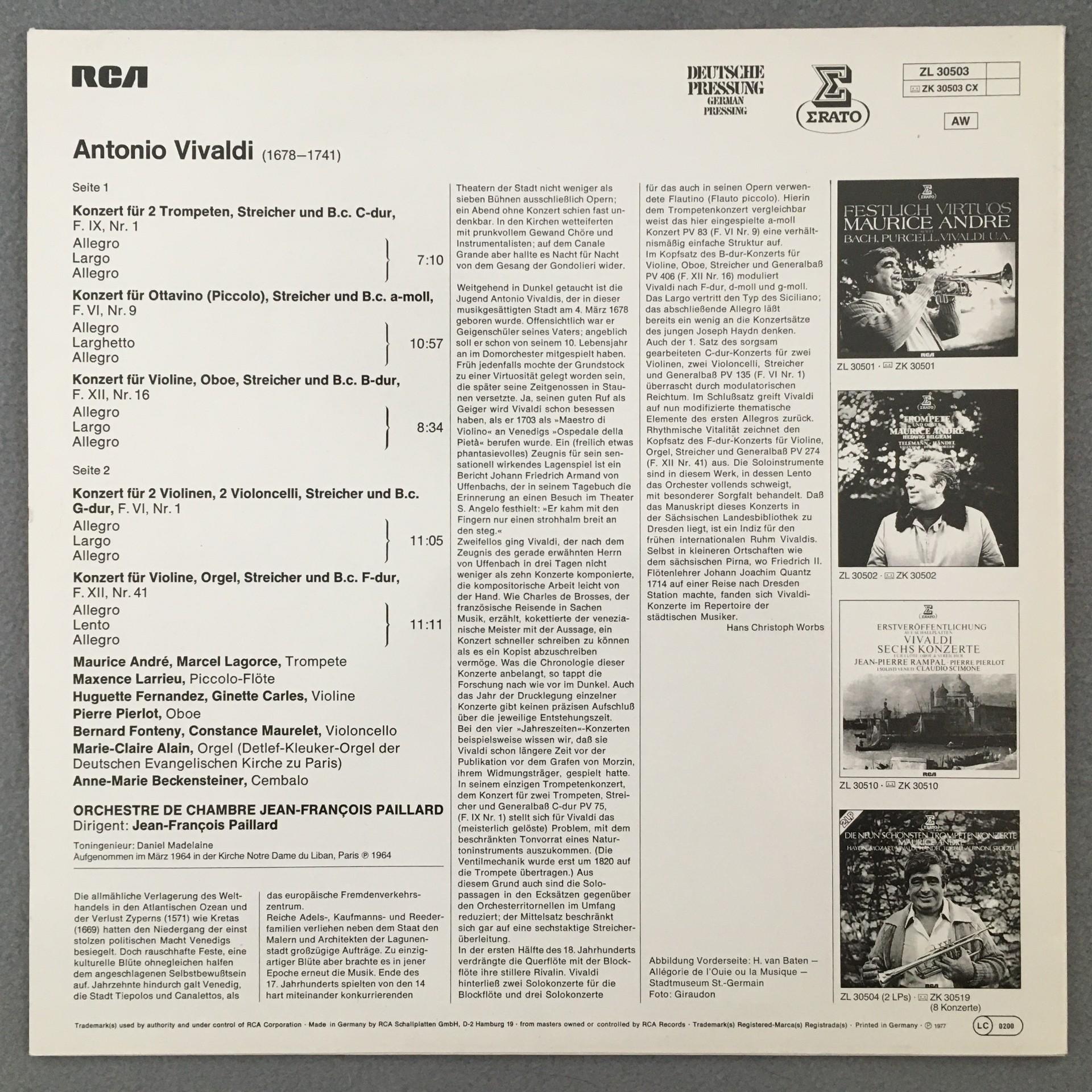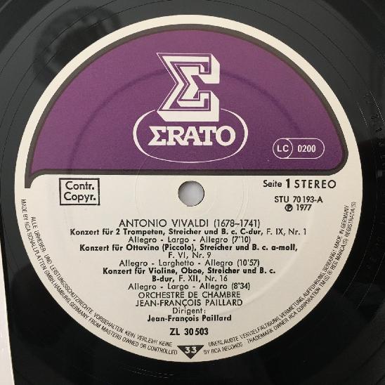 L531 Vivaldi 5 Concertos Andre Trumpet Alain Organ Paillard Erato ZL 30503 Ster