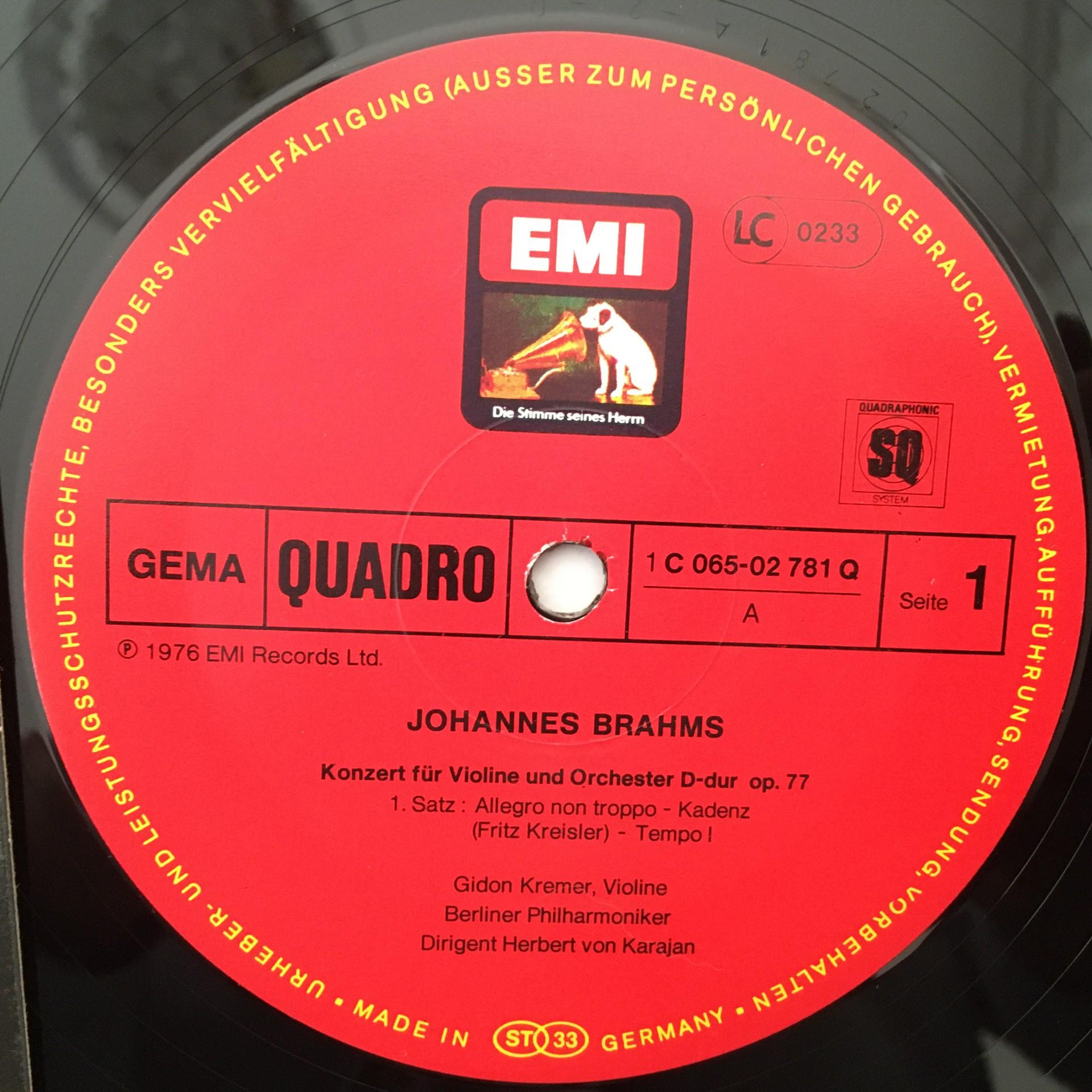 L533 Brahms Violin Concerto Kremer Karajan BPO EMI 1 C 065-02 781 Q Quadro