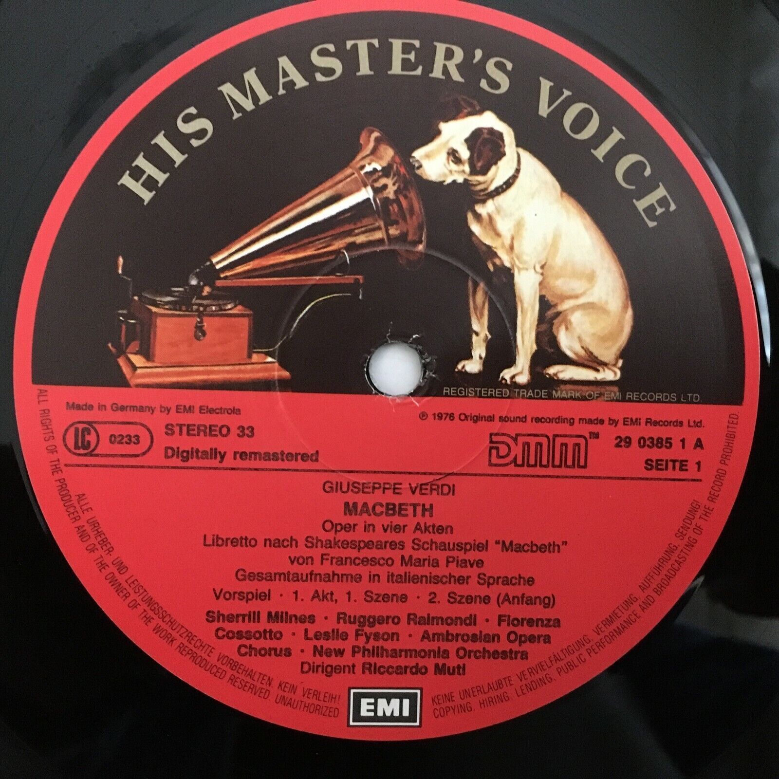 B545 Verdi Macbeth Milnes Carreras Muti 2LP EMI 153 29 0385 3 Digital Stereo