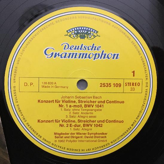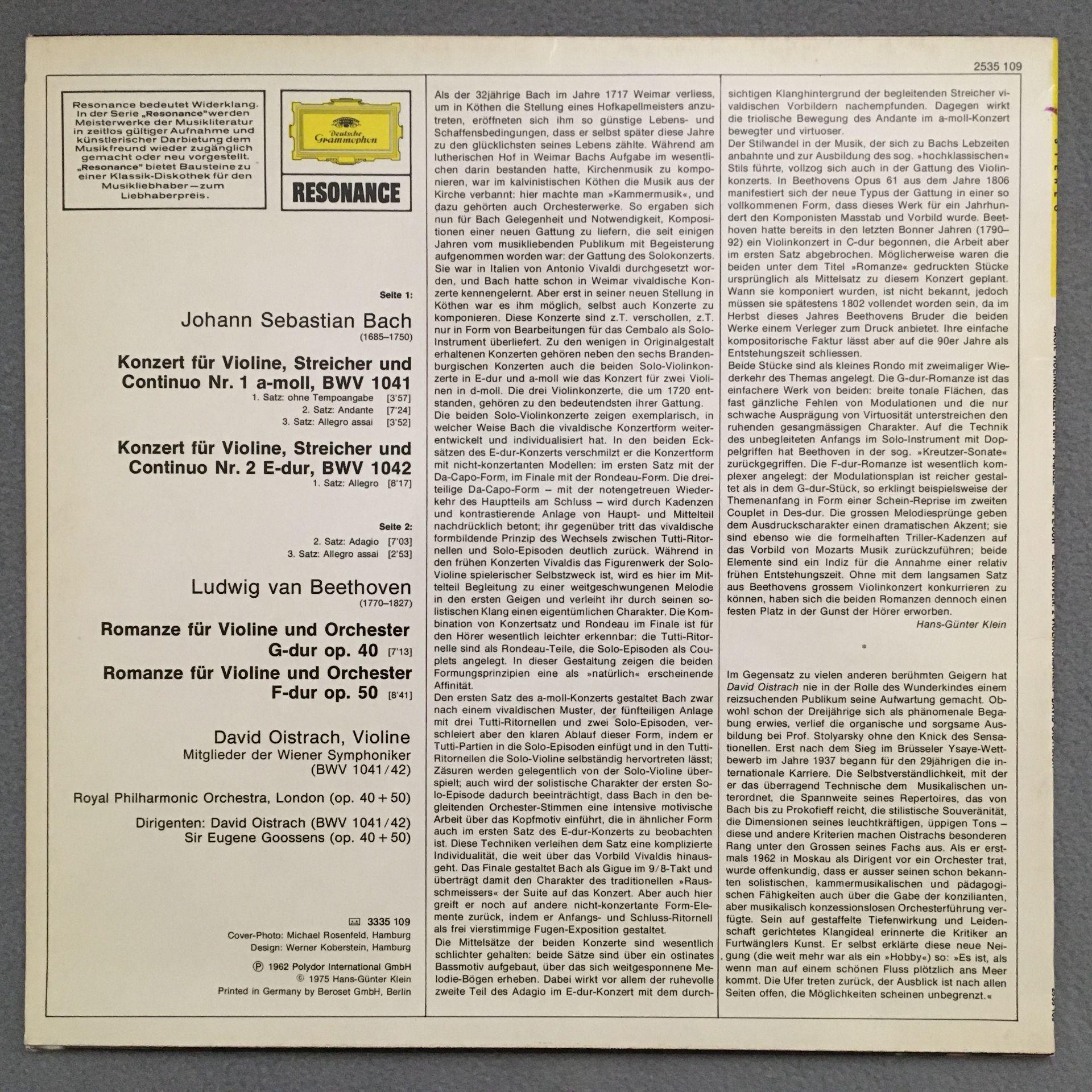 P381 Beethoven Violinromances Bach Violin Concertos Oistrakh DGG 2535 109 Stereo