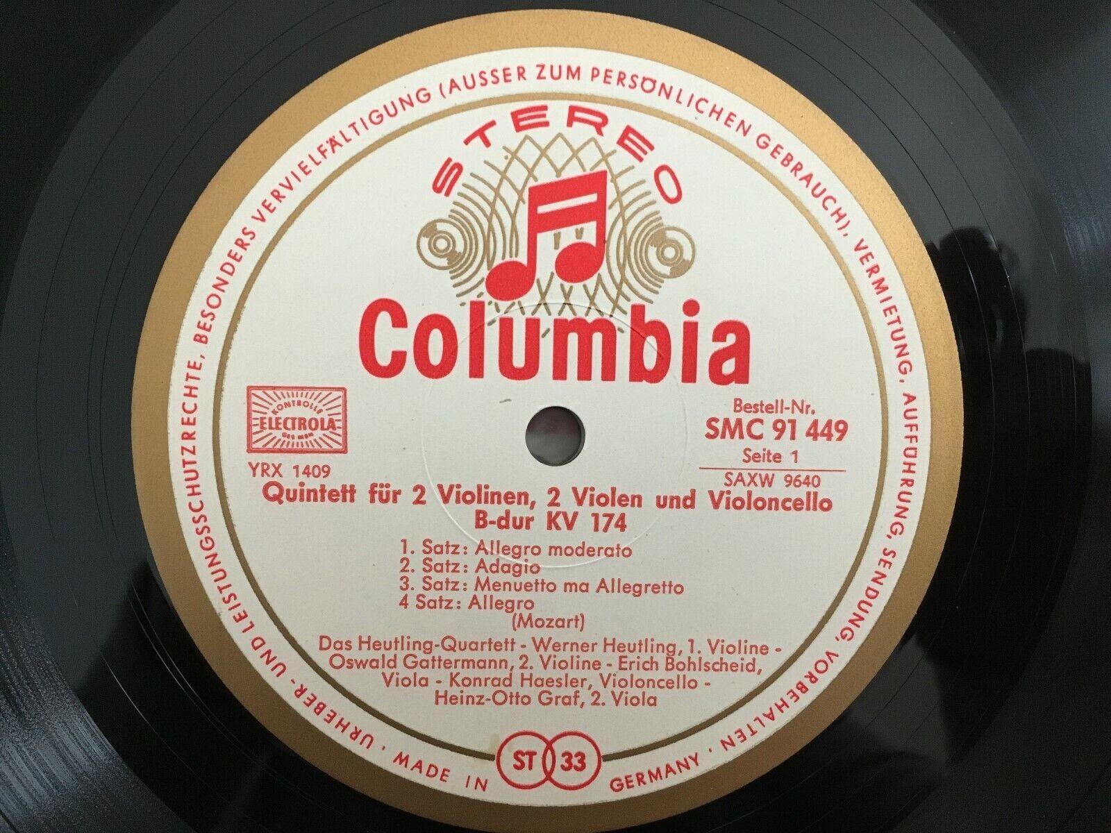 G499 Mozart Complete String Quintets Heutling 3LP Columbia w/g SMC 91449/51 Ster