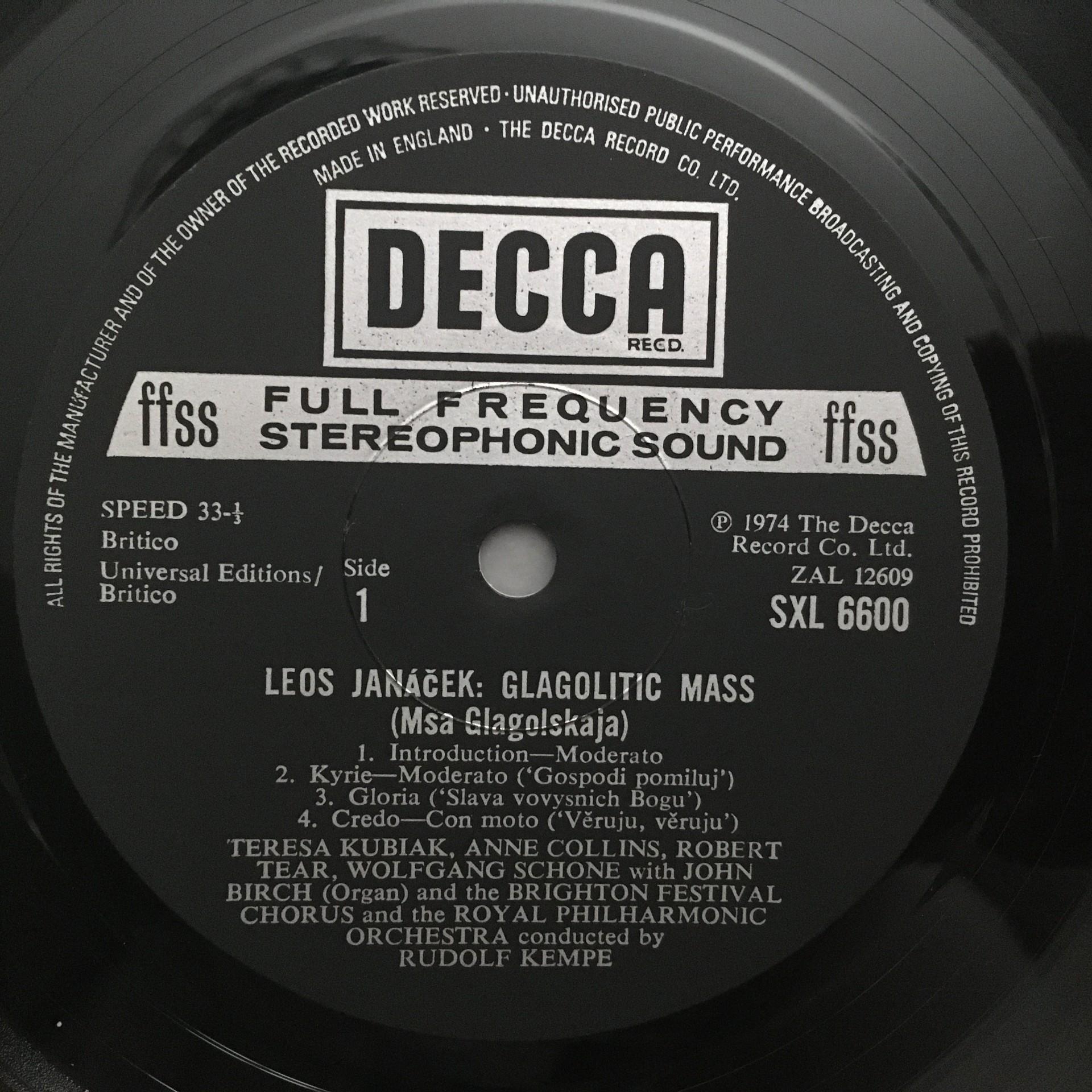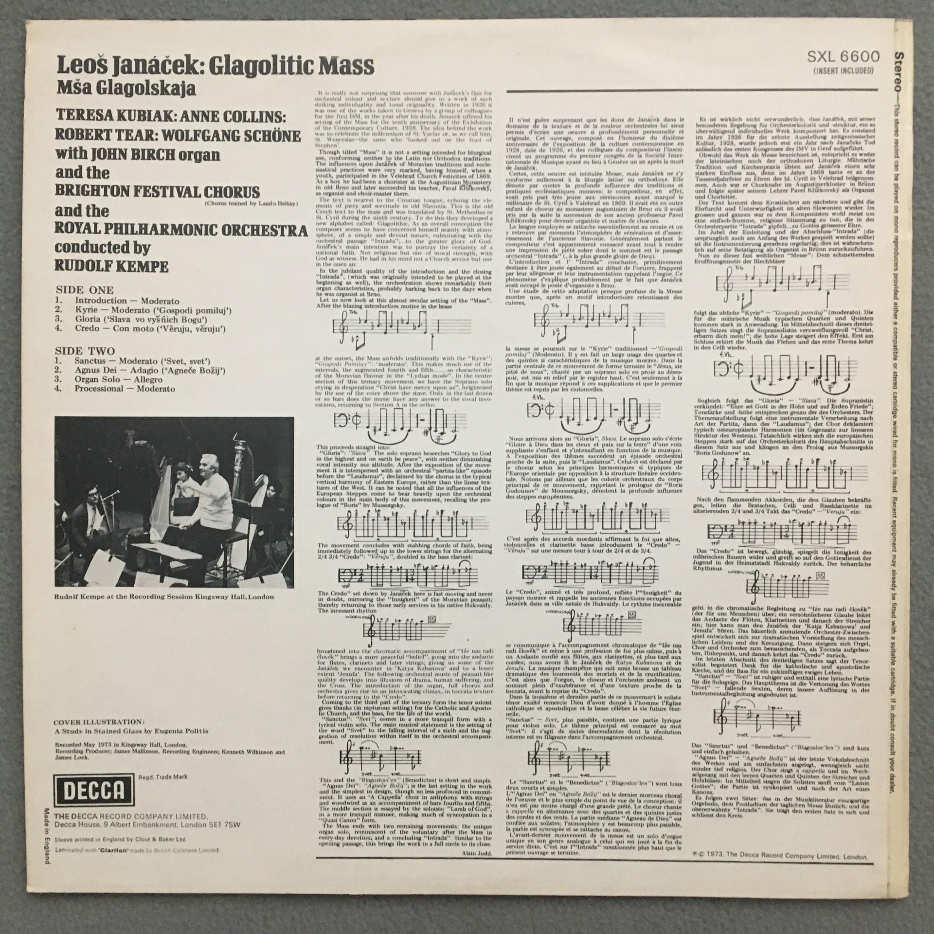 L559 Janacek Glagolitic Mass Birch Organ Kempe DECCA SXL 6600 Stereo