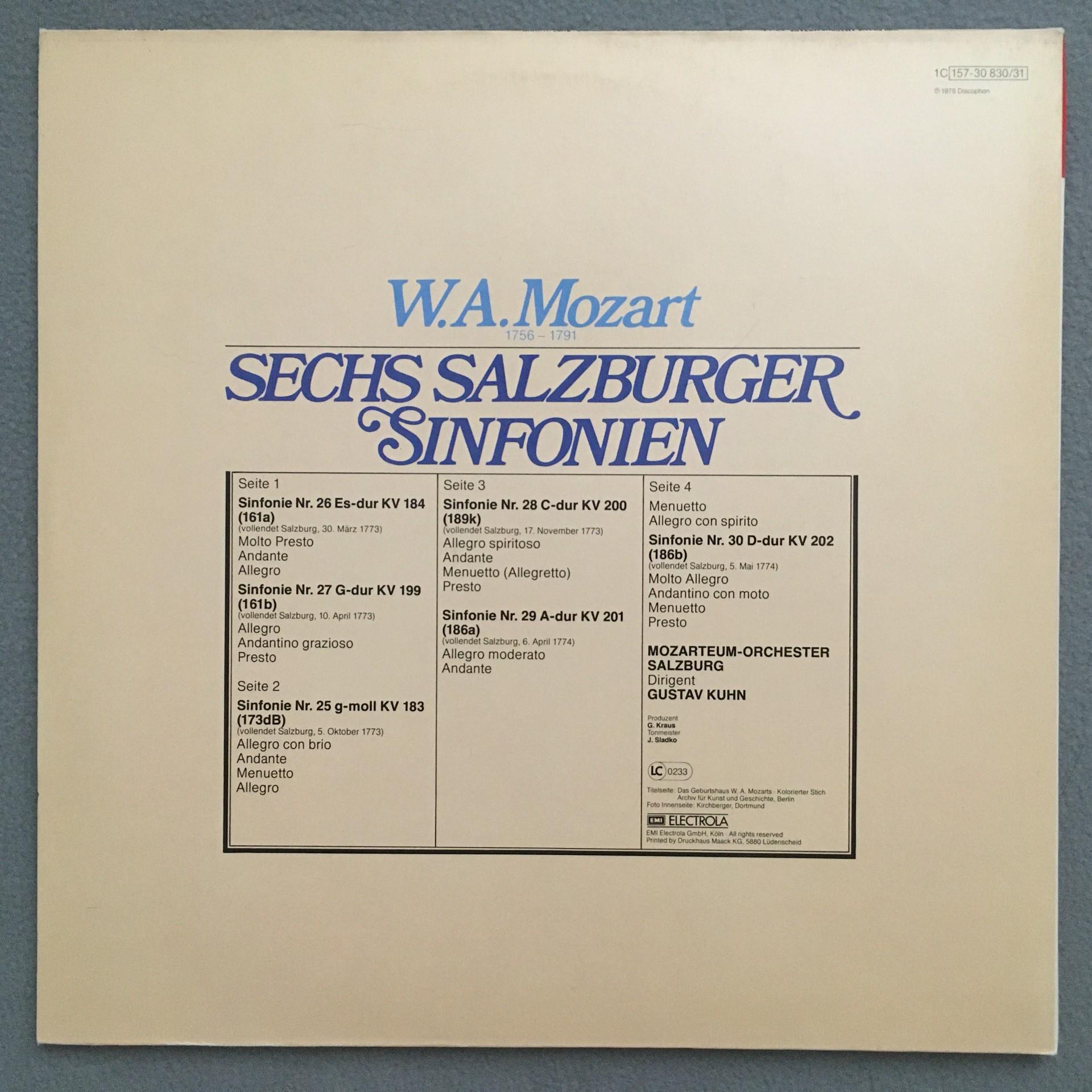 L560 Mozart 6 Salzburg Symphonies Kuhn 2LP EMI 1C 157-30 830/31 Stereo