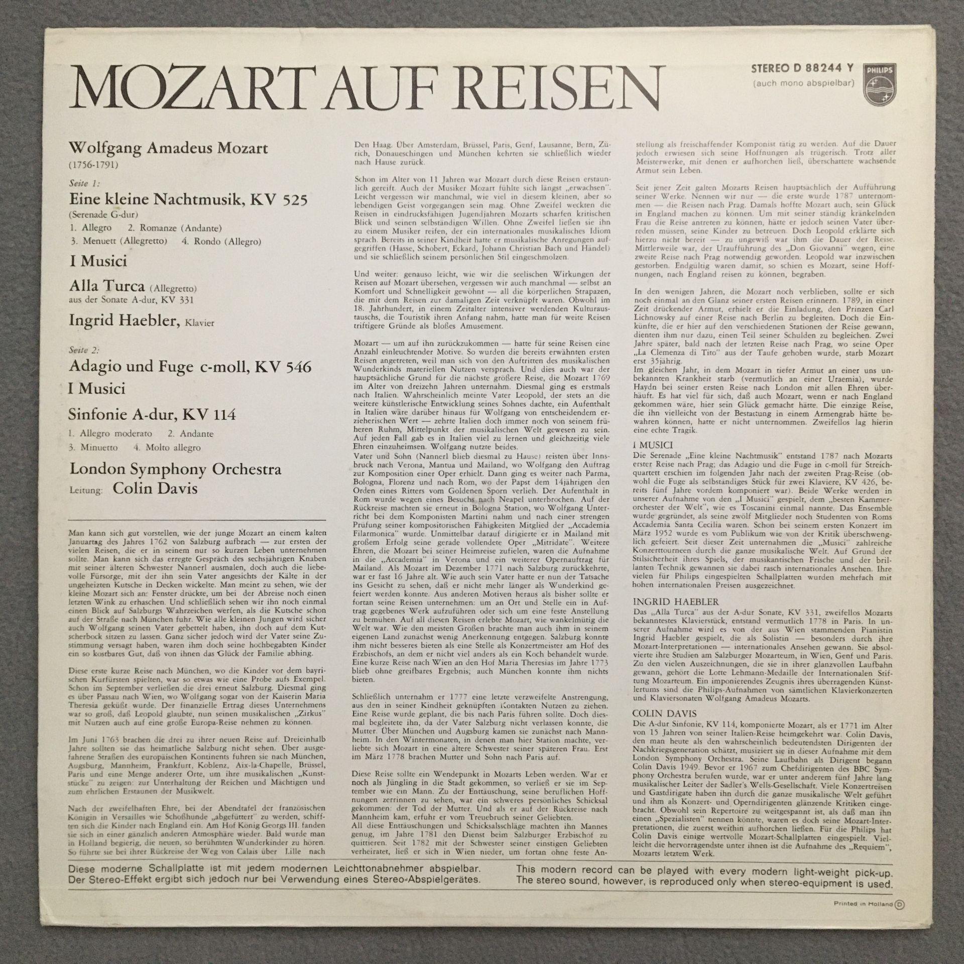 L564 Mozart Serenade Symphony Haebler I Musici Davis Philips D 88 244 Y Stereo
