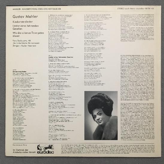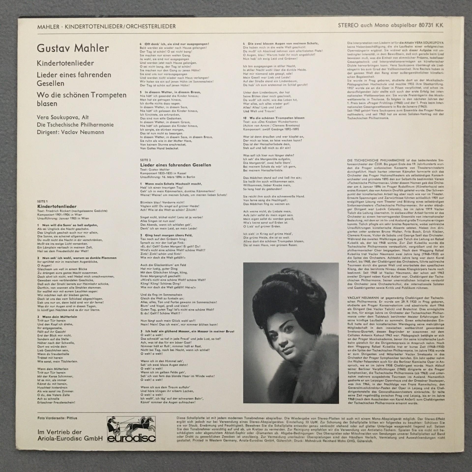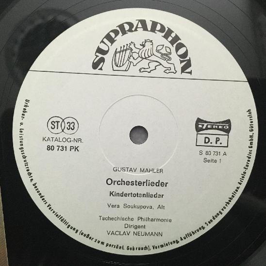 L572 Mahler Kindertotenlieder Soukupova Neumann Supraphon 80 731 KK Stereo