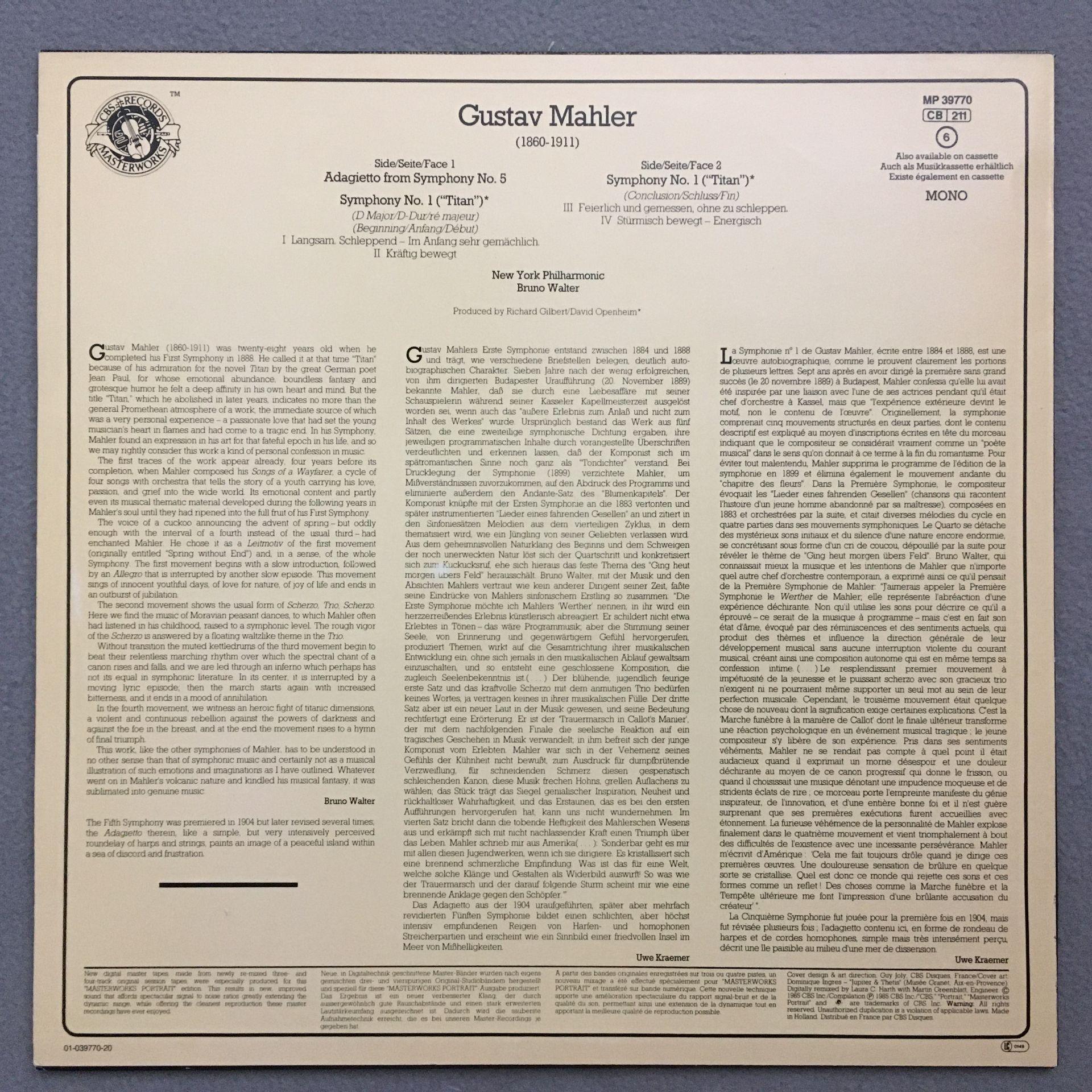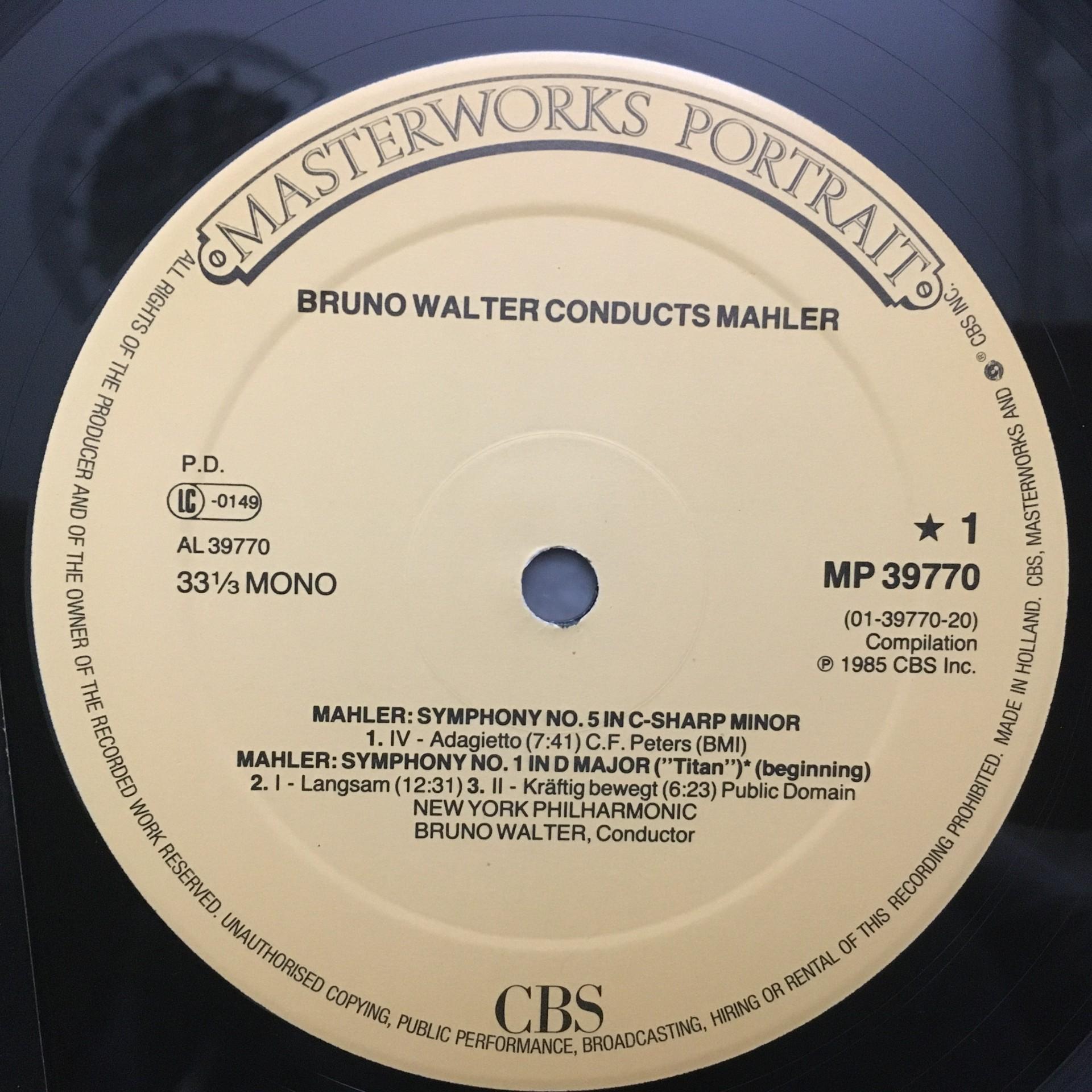 L576 Mahler Symphonies No.1 & No.5 Walter CBS MP 39770