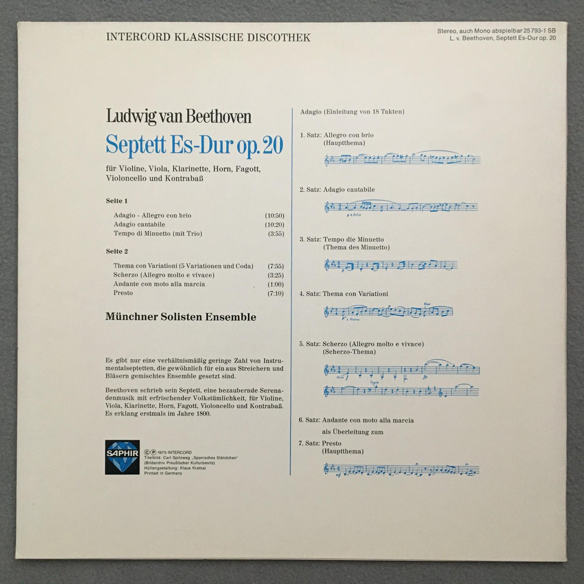 L578 Beethoven Septet Op.20 Munich Solist Ensemble Saphir 25 793-1 SB Stereo