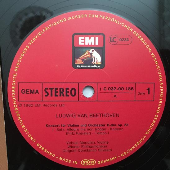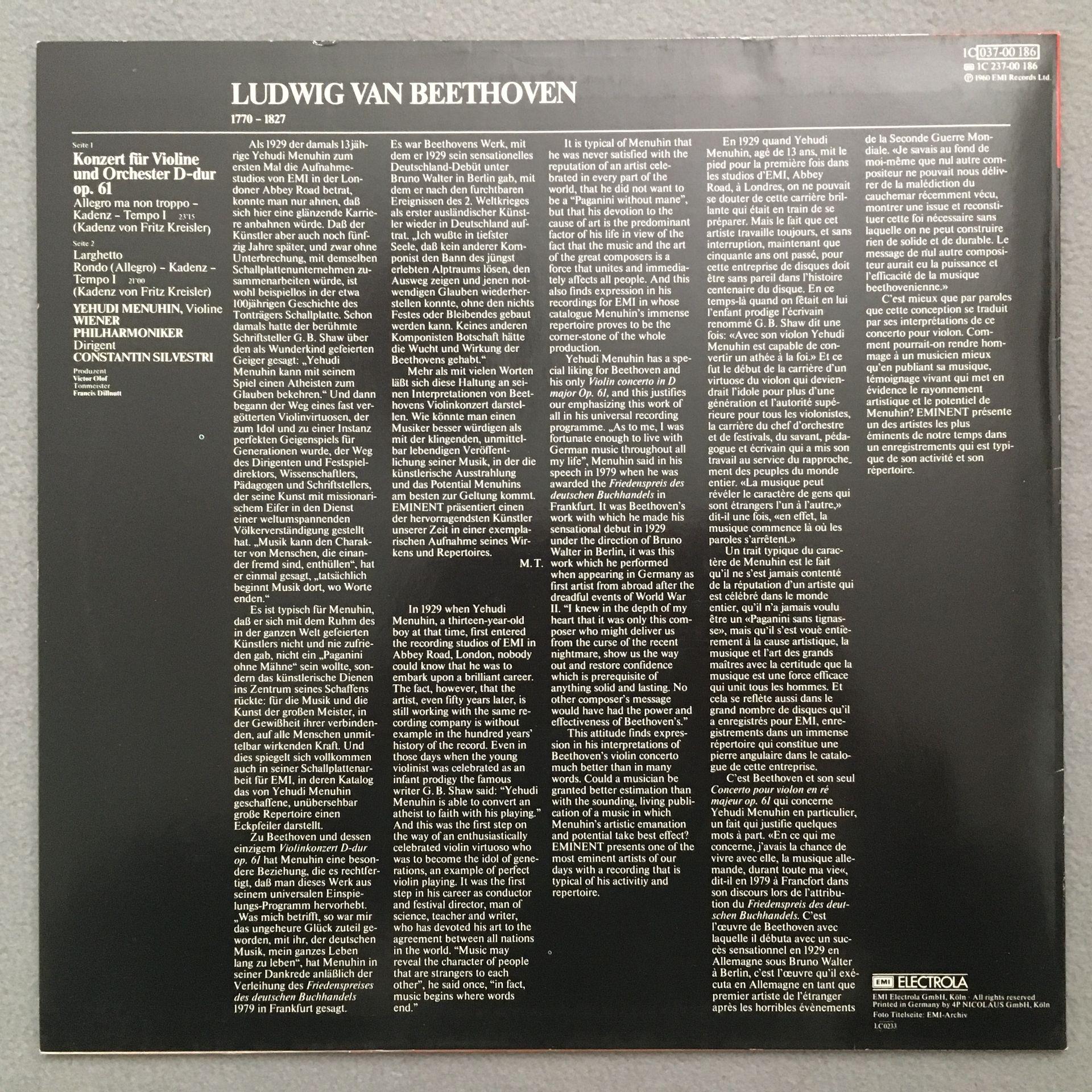 L581 Beethoven Violin Concerto Menuhin Silvestri VPO EMI 1C 037-00 186 Stereo