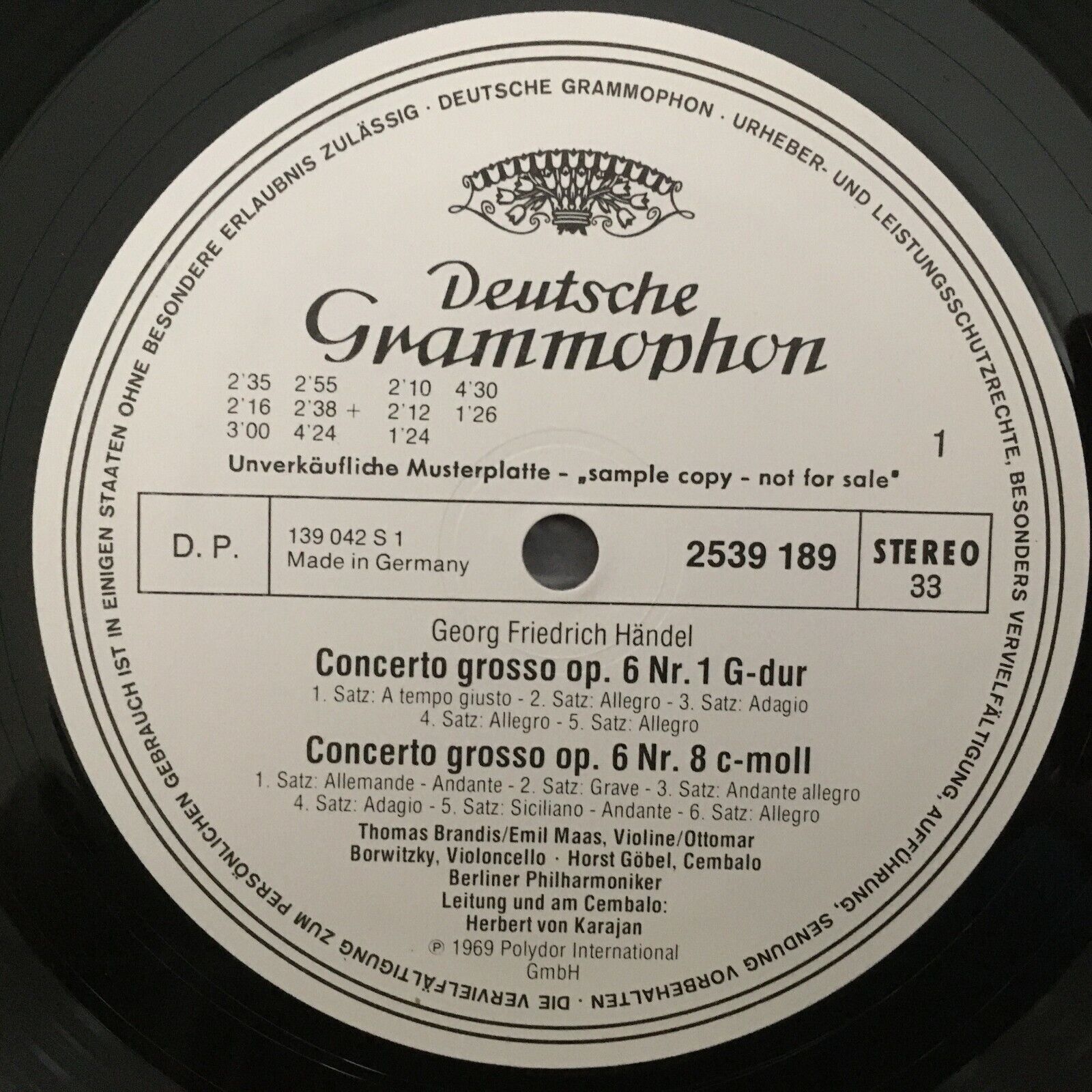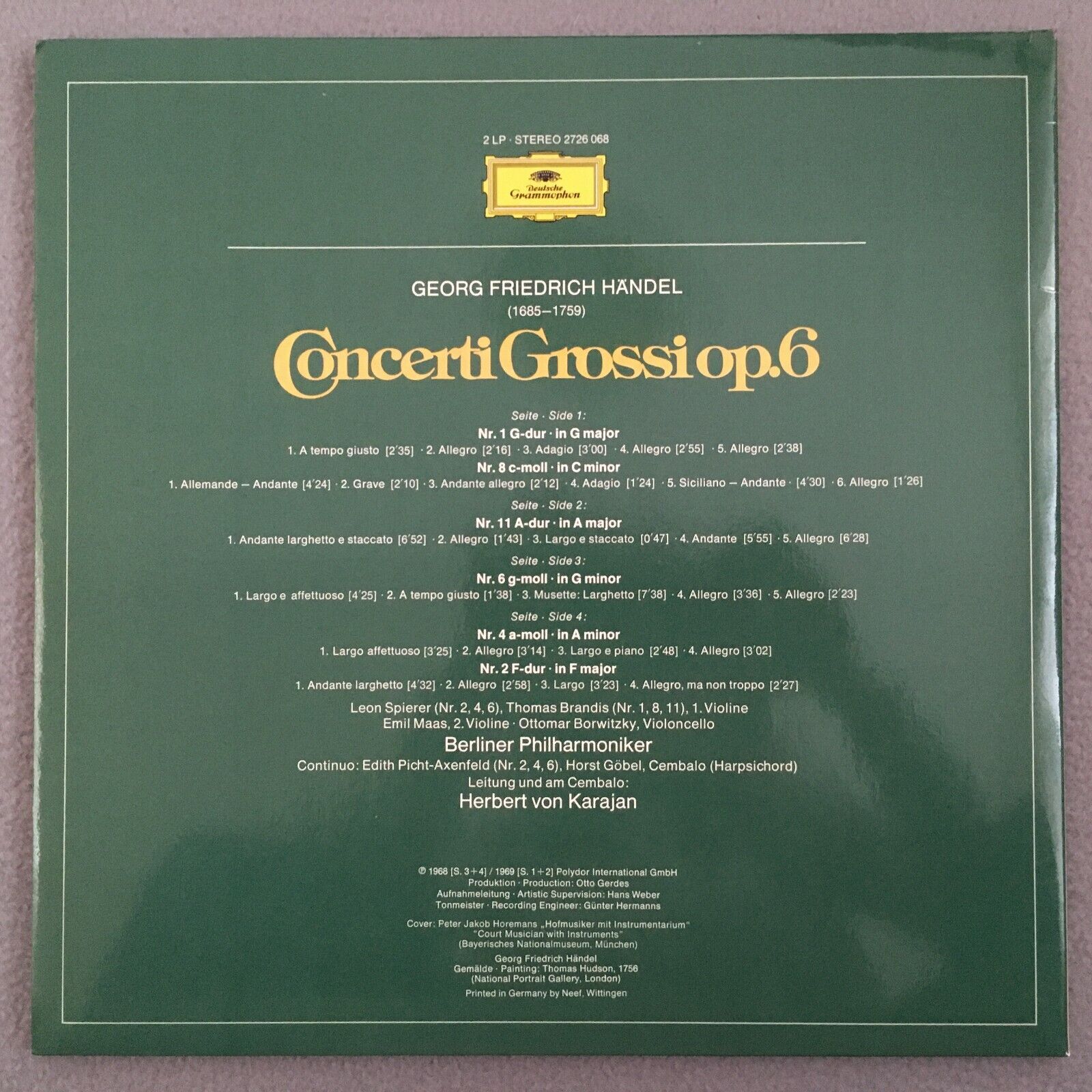 V252 Handel Concerti Grossi Vol.I Karajan BPO 2LP DGG 2726 068 Stereo PROMO
