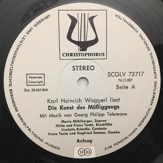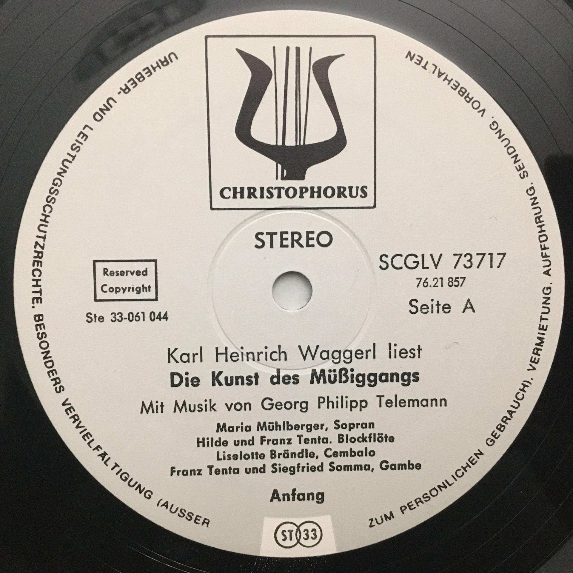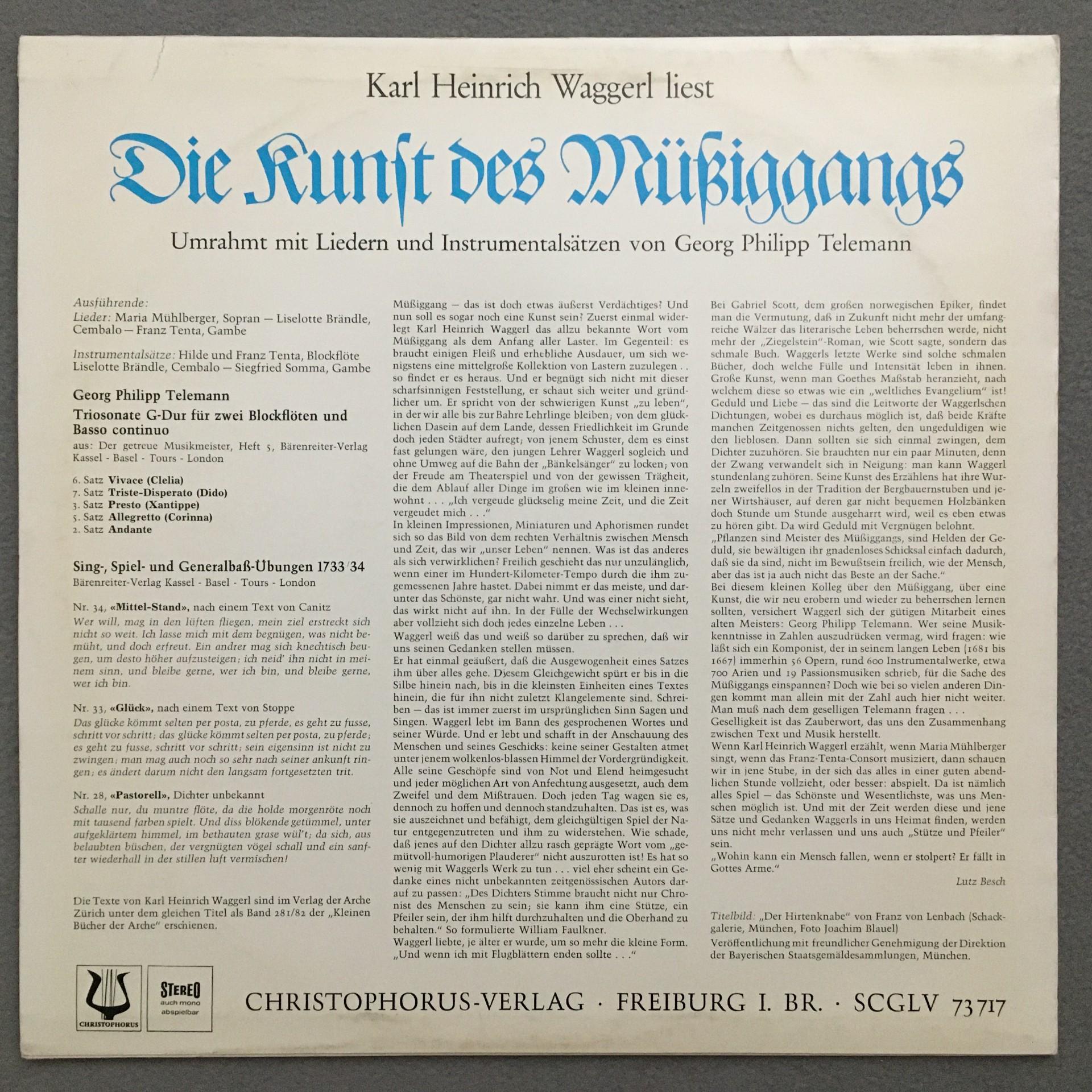 L592 Waggerl liest Die Kunst des Müssiggangs Christophorus SCGLV 73 717 Stereo
