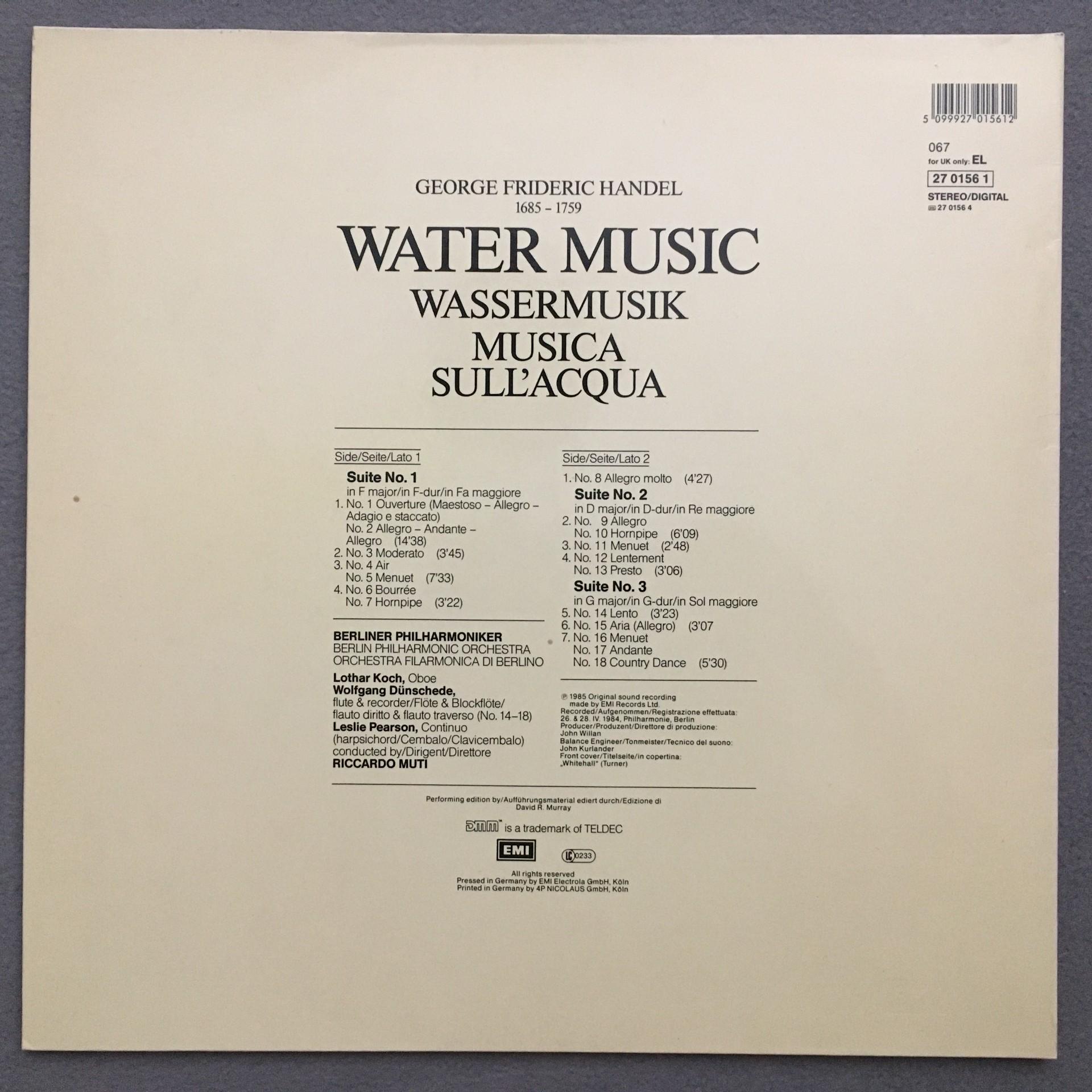 L593 Handel Watermusic Muti BPO EMI 067 27 0156 1 Digital Stereo