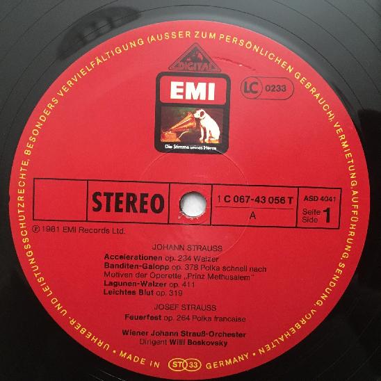 L594 J. Strauss Waltzes Polkas Boskovsky EMI 1C 067-43 056 T Digital Stereo