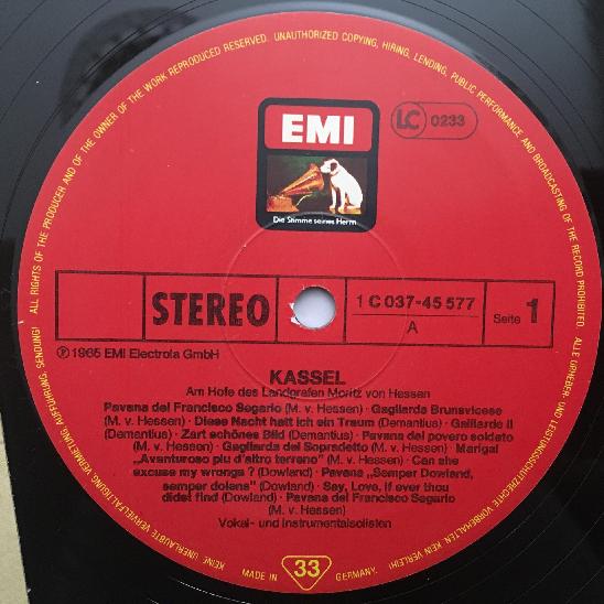 L603 Music from Kassel Moritz von Hessen Schütz EMI 1C 037-45 577 Stereo