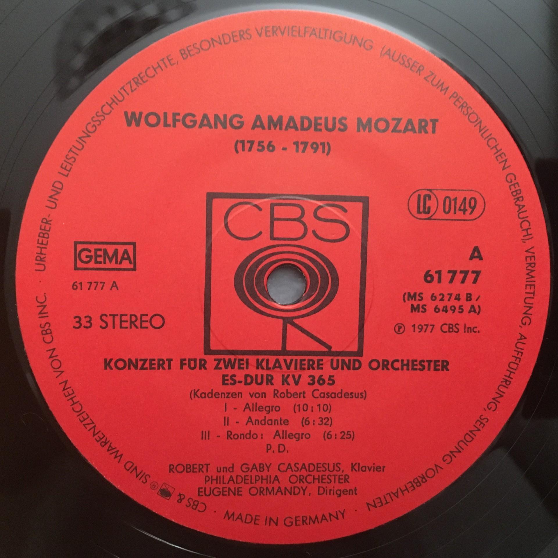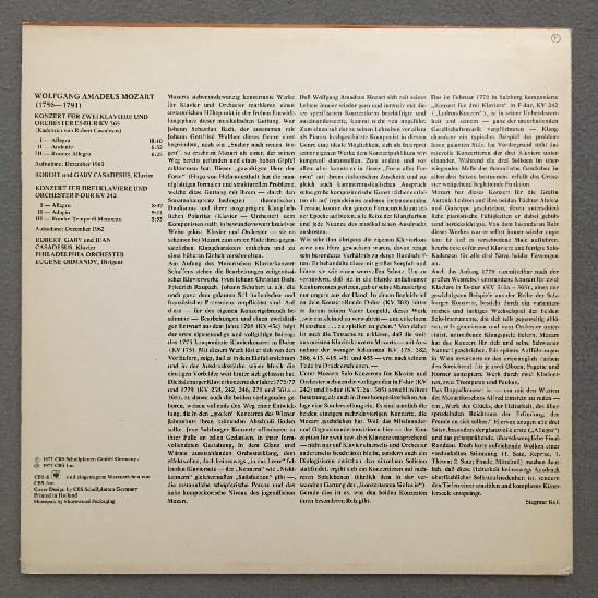 L613 Mozart Piano Concertos G. & J. Casadesus Ormandy CBS 61 777 Stereo
