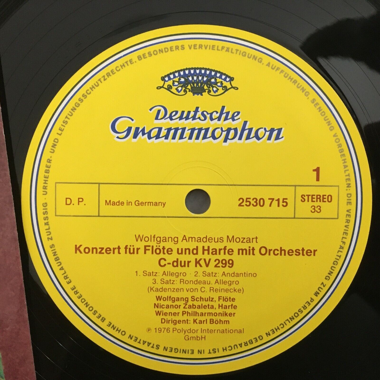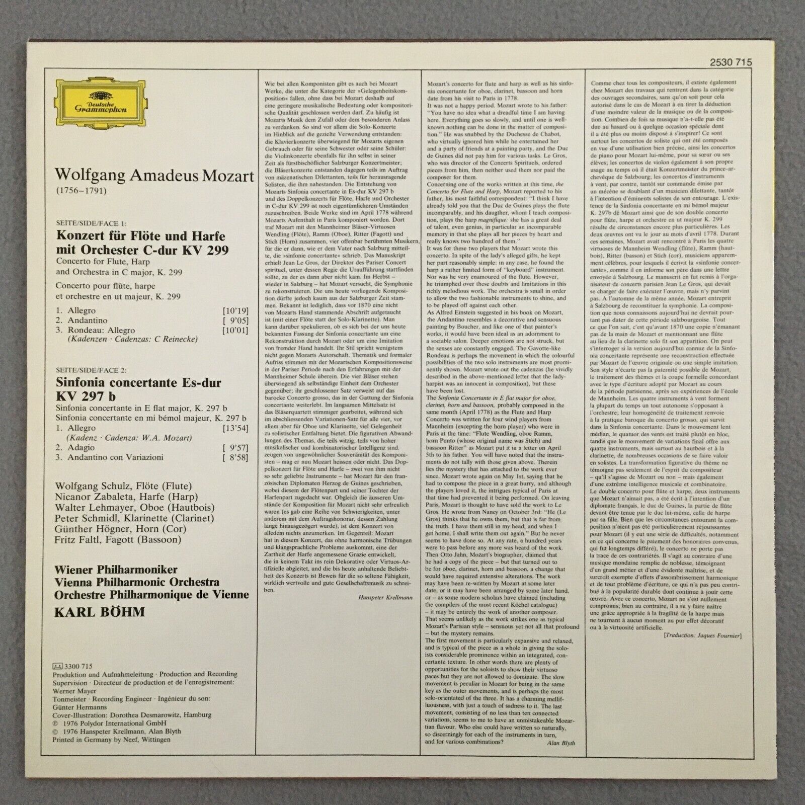 V272 Mozart Flute & Harp Concerto Zabaleta Schulz Bohm VPO DGG 2530 715 Stereo