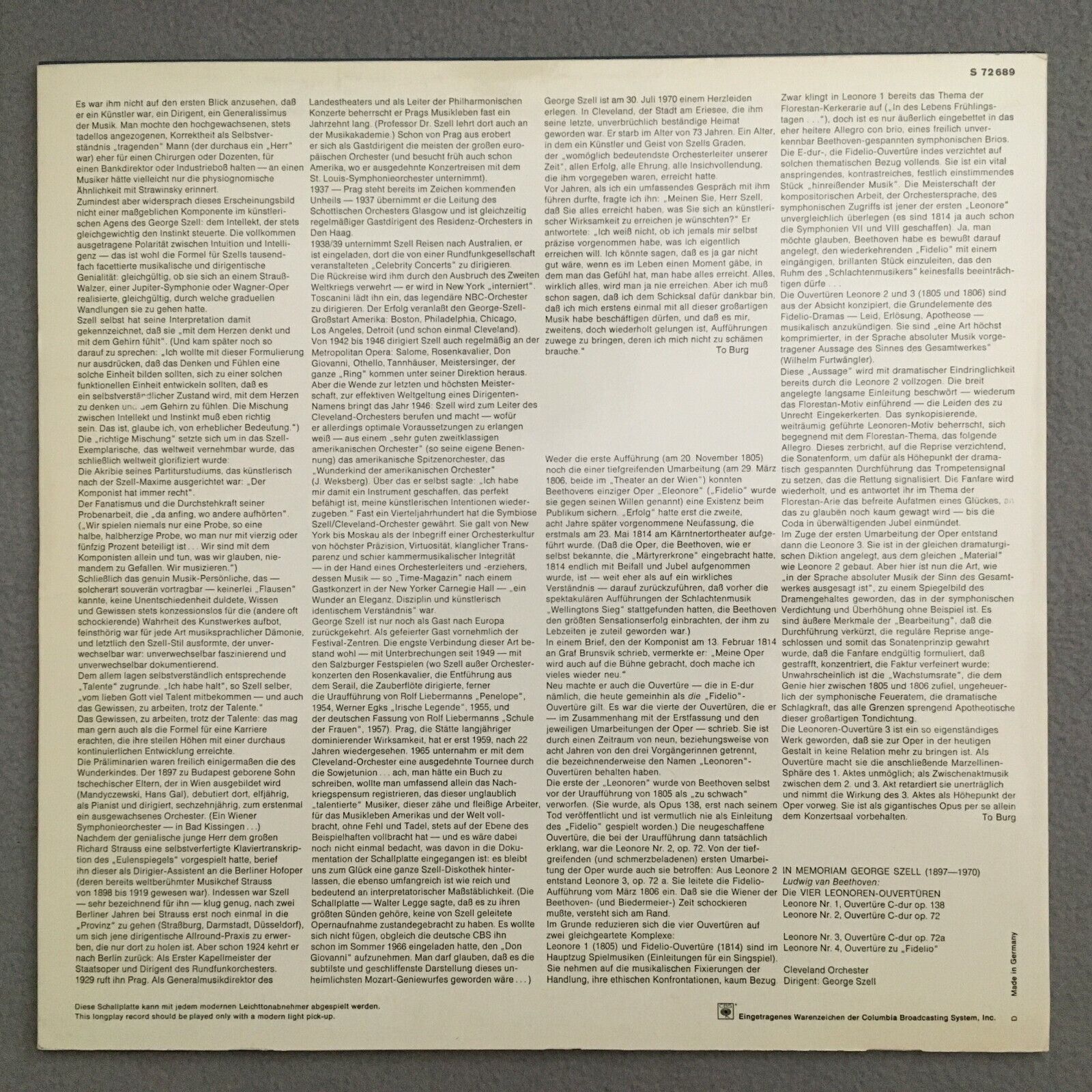 V289 Beethoven The 4 Leonore Overtures Szell CBS S 72 689 Stereo