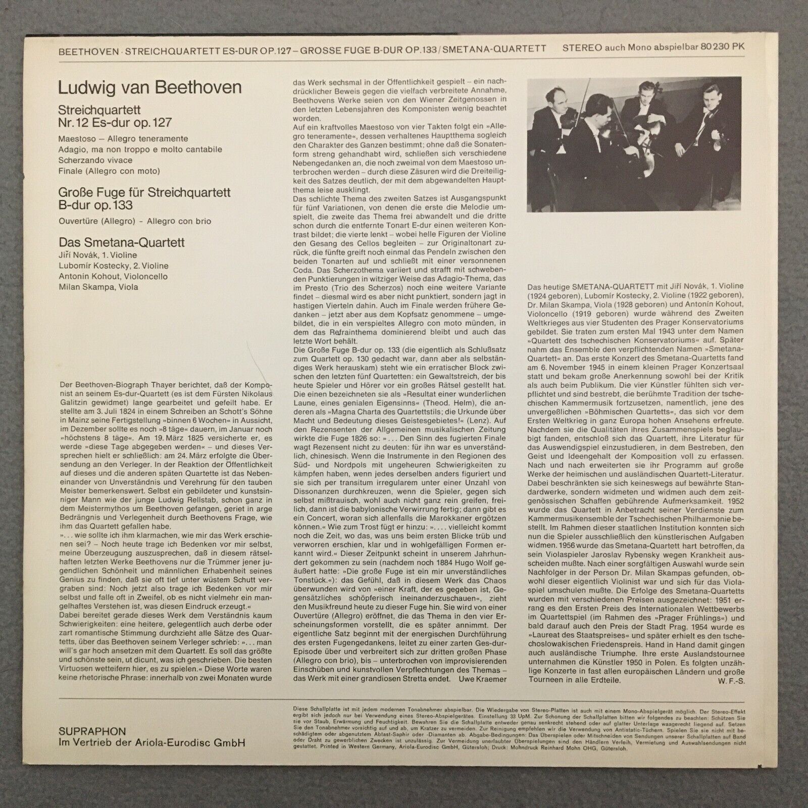 S984 Beethoven String Quartet Great Fugue Smetana Quartet Supraphon 80 230 PK St