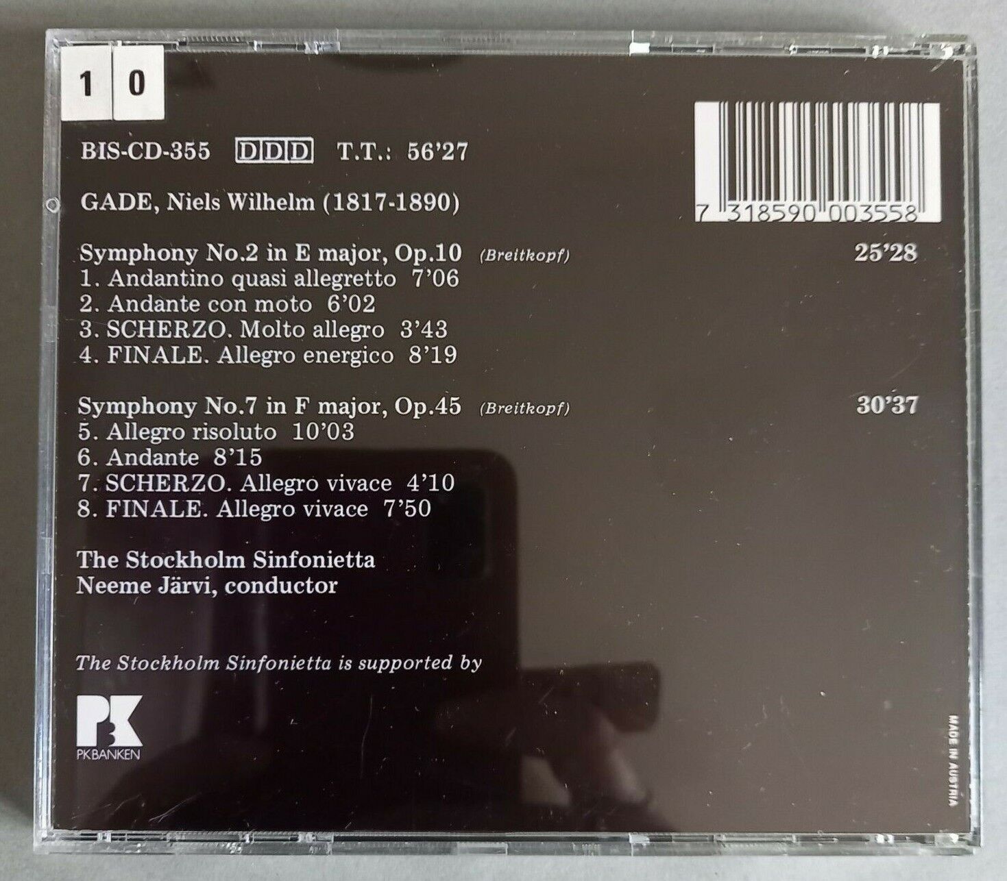 CA056 Niels W. Gade Symphony No.2 & Symphony No.7 Neeme Jarvi BIS CD-355