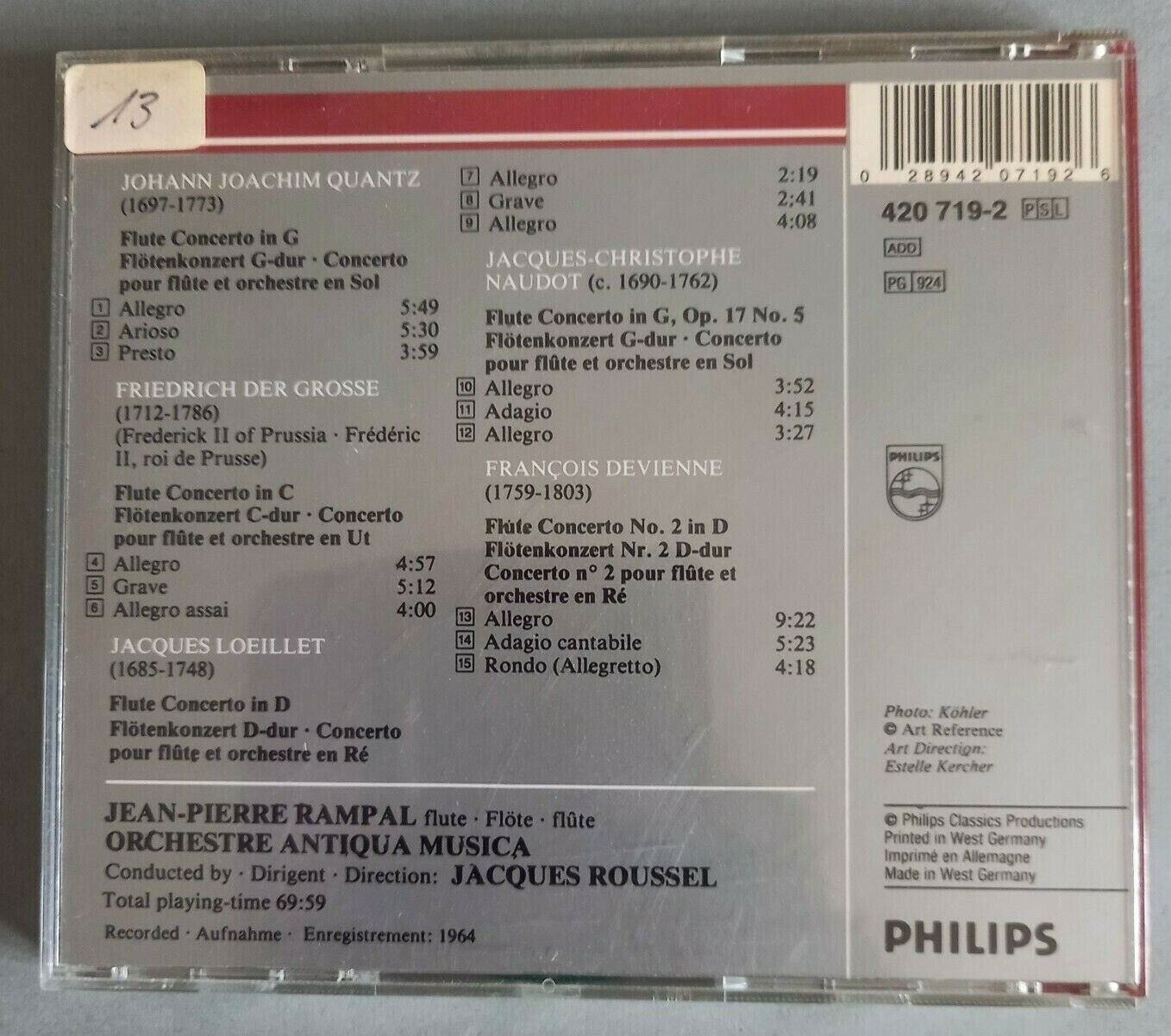 CA068 Jean-Pierre Rampal Flute Concertos Quantz Devienne Philips Silver Line