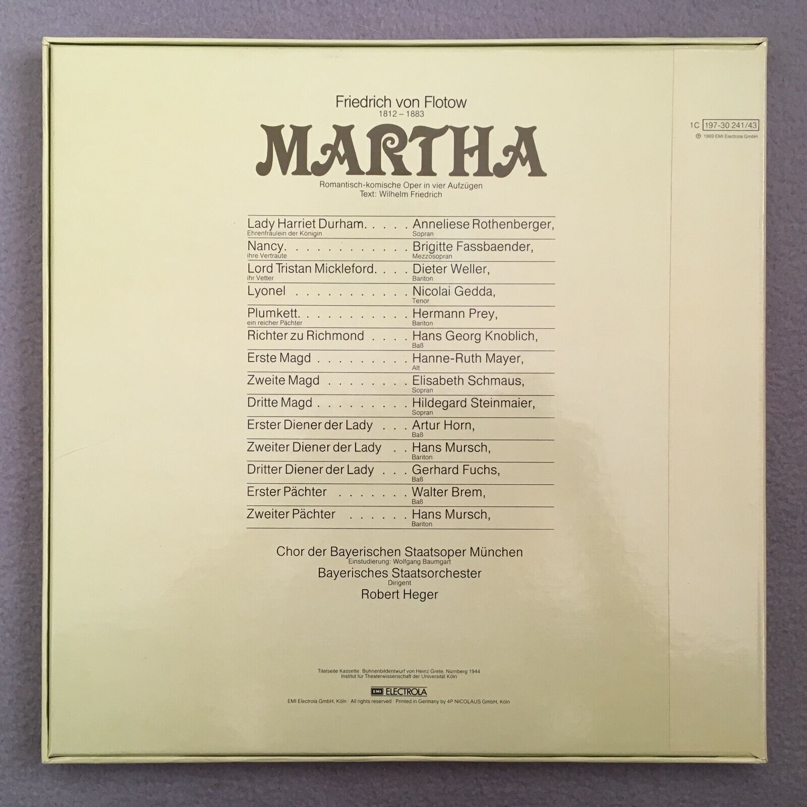 G196 Flotow Martha Rothenberger Gedda Prey Heger 3LP EMI 1C 197-30 241/43 Stereo