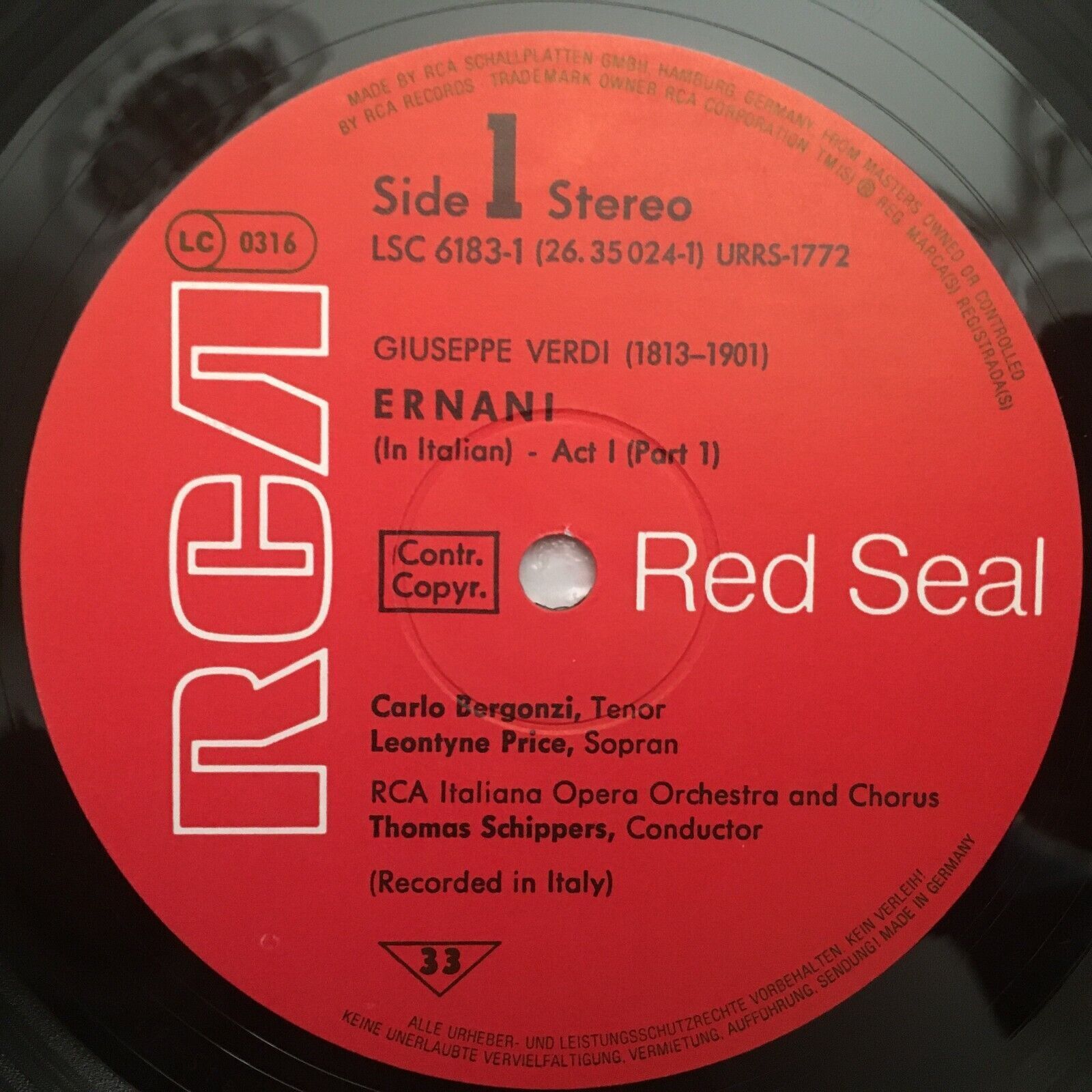 C085 Verdi Ernani Price Bergonzi Sereni Schippers 3LP RCA LSC 6183/1-3 Stereo