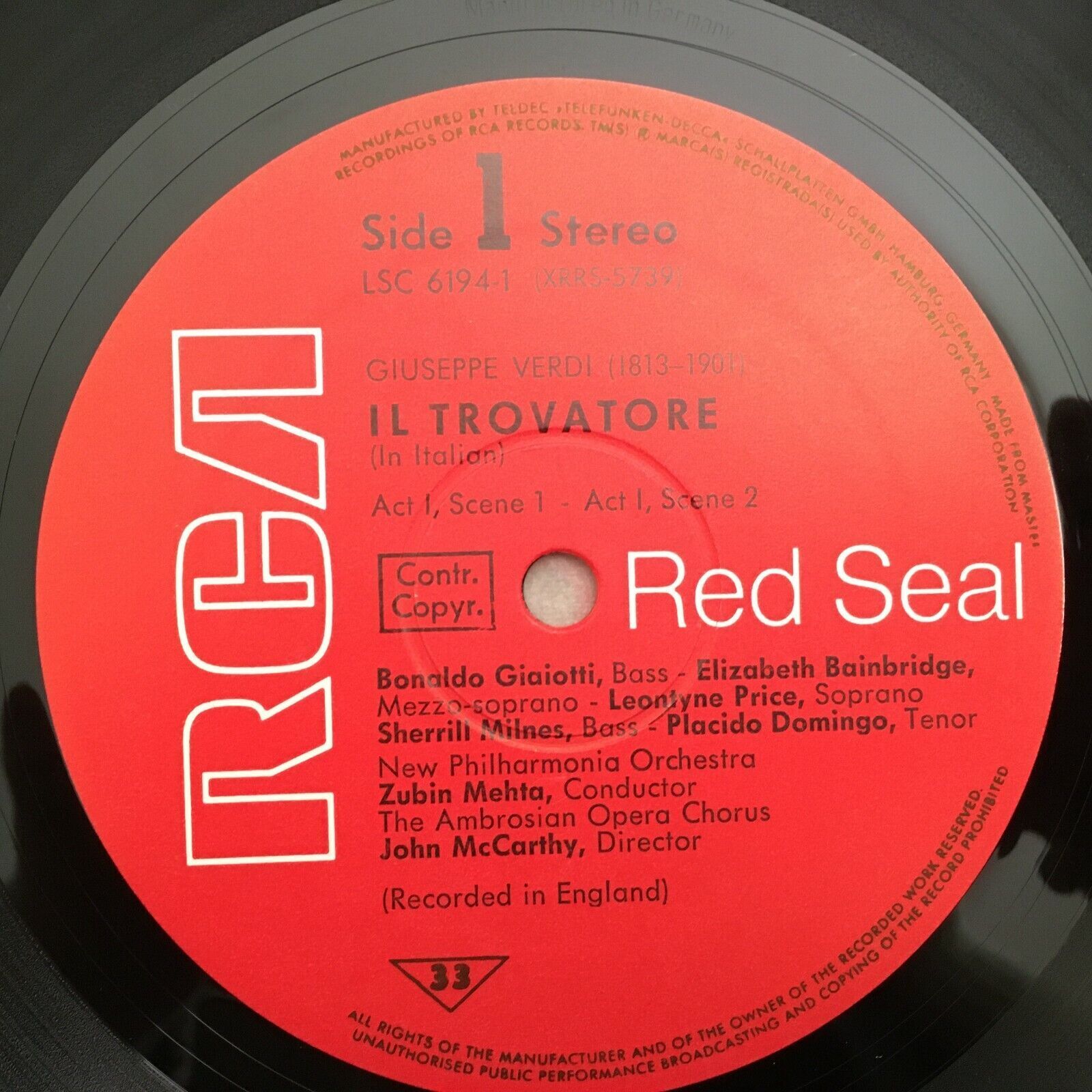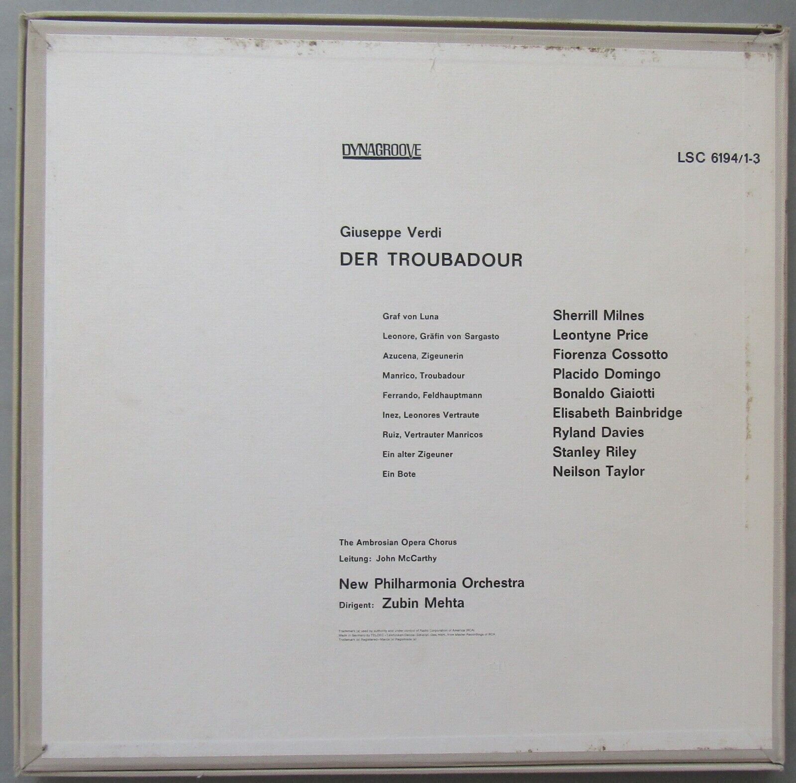 G174 Verdi il Trovatore Price Milnes Domingo Mehta 3LP RCA LSC-6194/1-3 Stereo