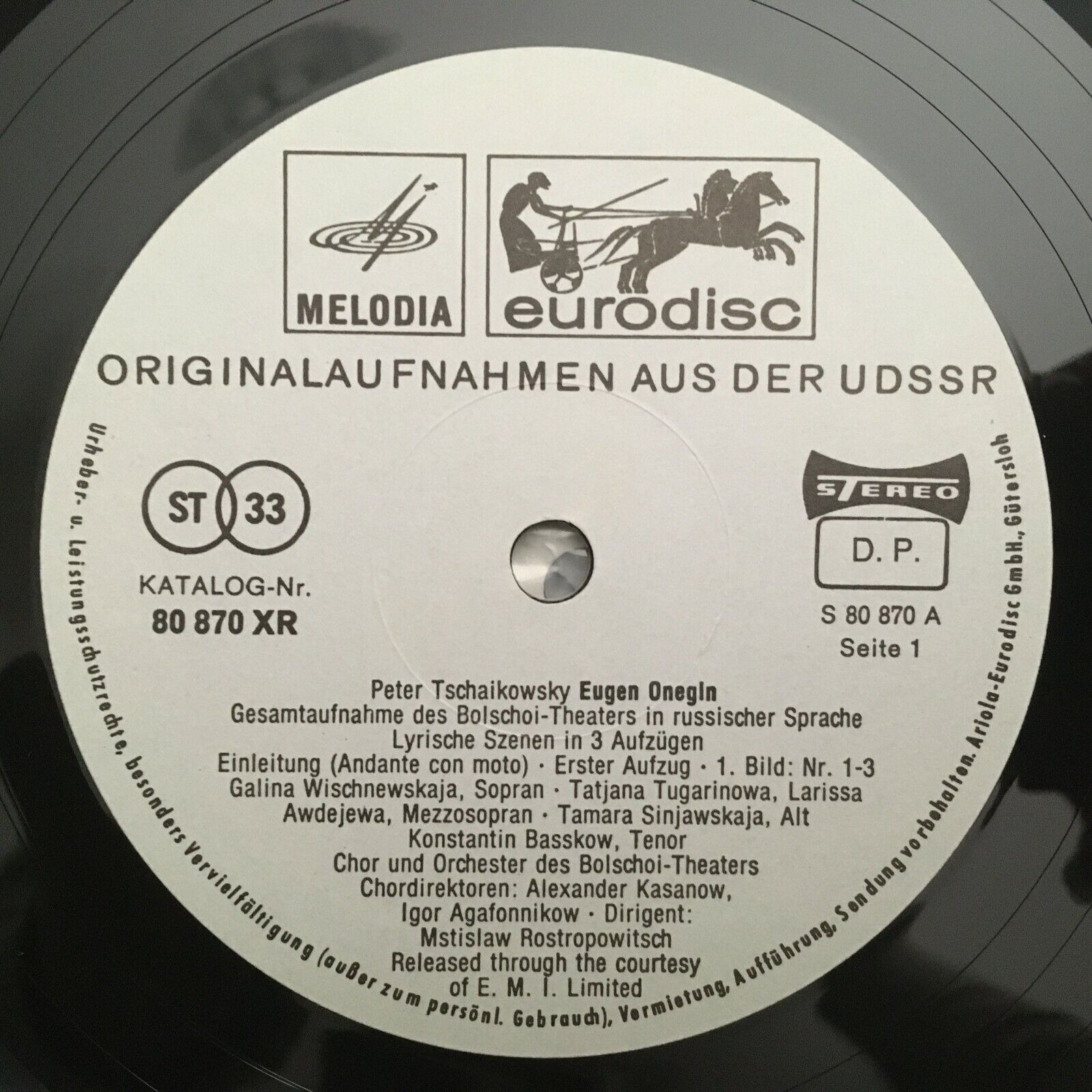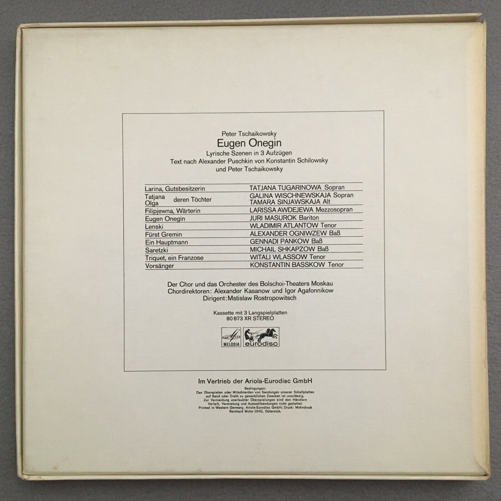 G263 Tchaikovsky Eugen Onegin Wlassow Rostropovich 3LP Eurodisc 80 873 XR Stereo