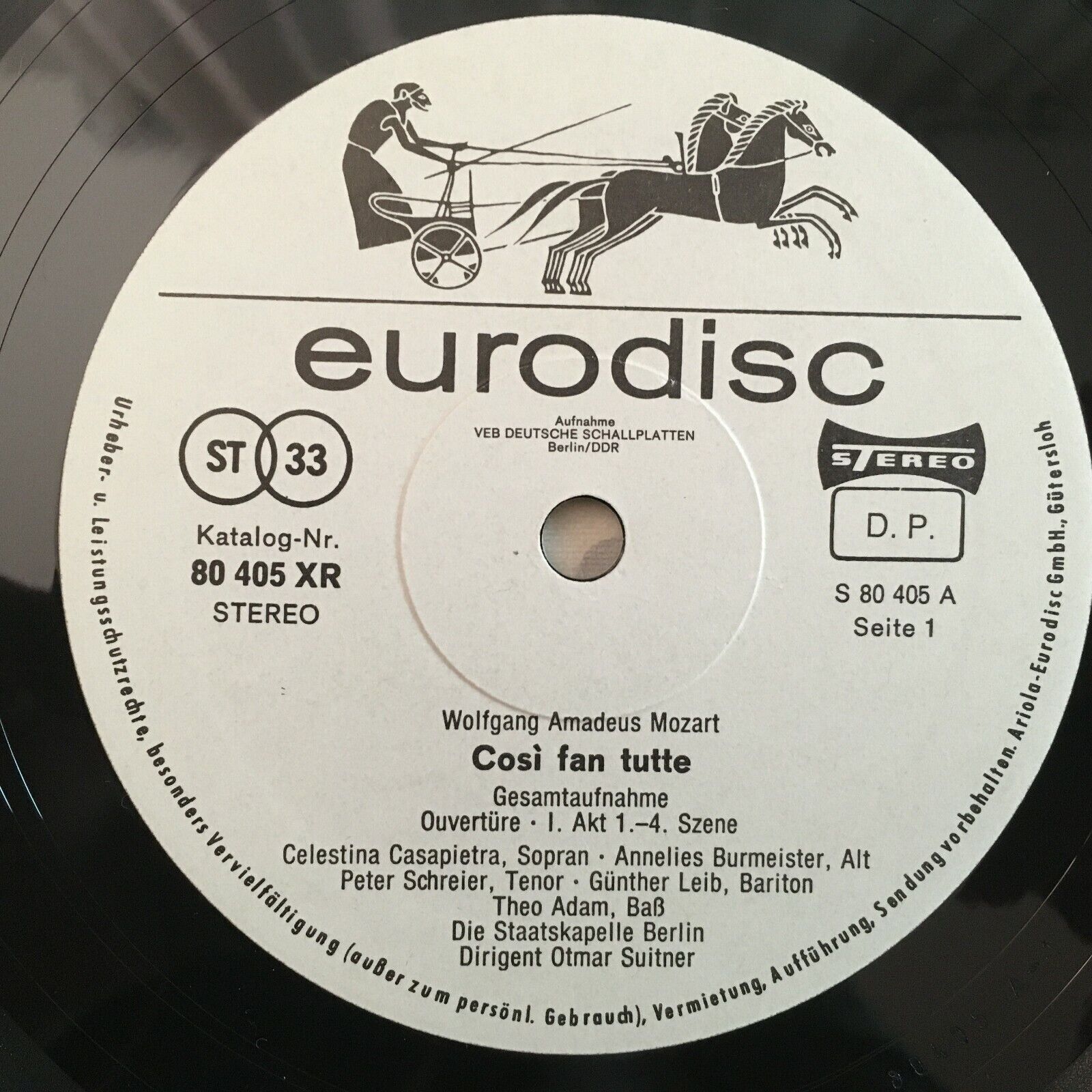 C131 Mozart Cosi fan Tutte Schreier Adam Suitner 3LP Eurodisc 80 408 XR Stereo