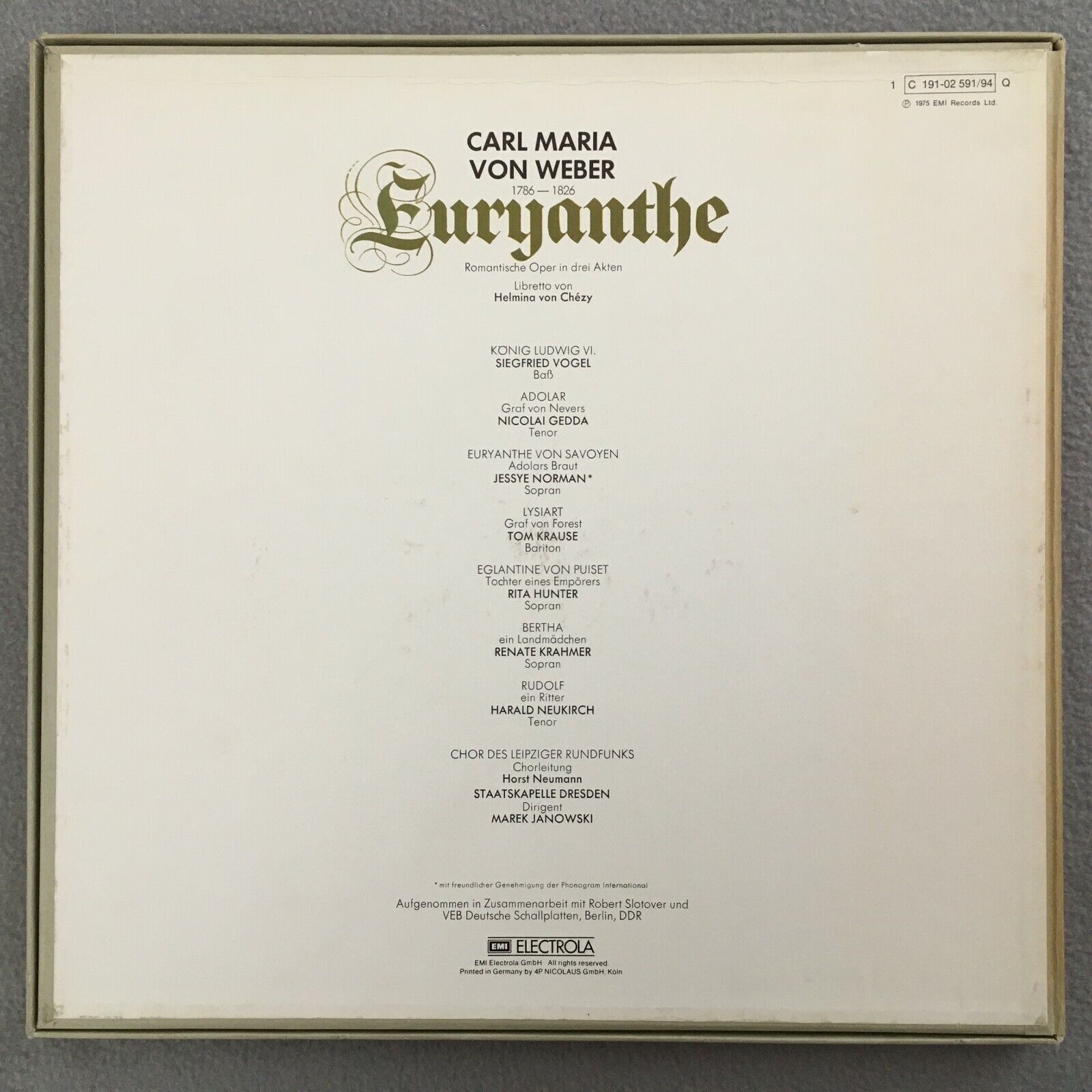 C141 Weber Euryanthe Gedda Norman Janowski 4LP EMI 1 C 191-02 591/94 Q Quadro