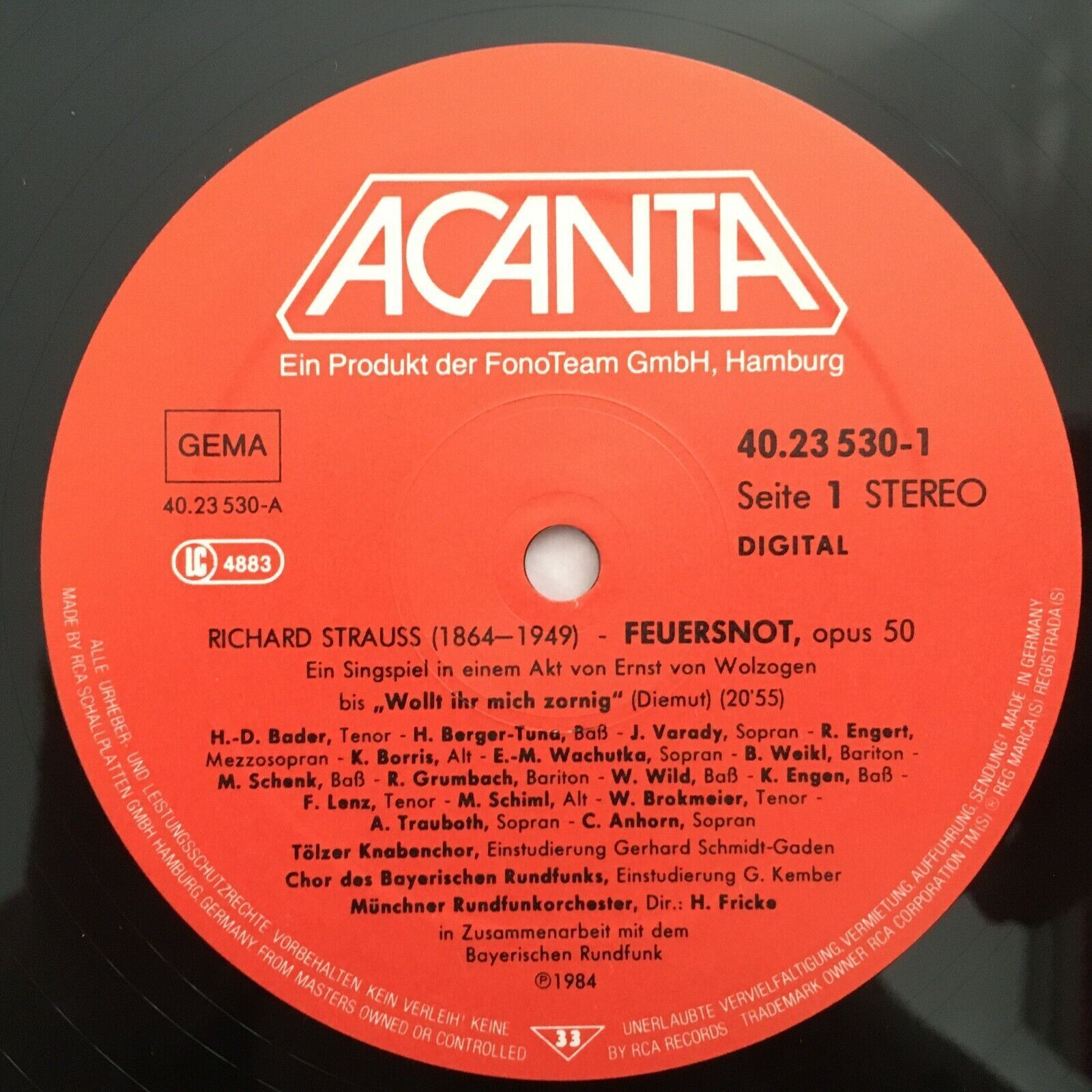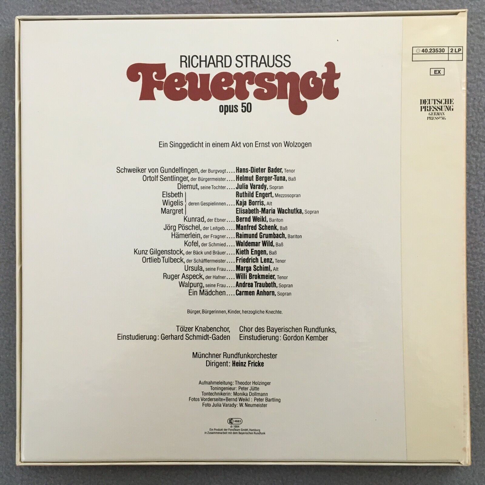 C153 R. Strauss Feuersnot Varady Weikl Fricke 2LP Acanta 40.23530 Stereo