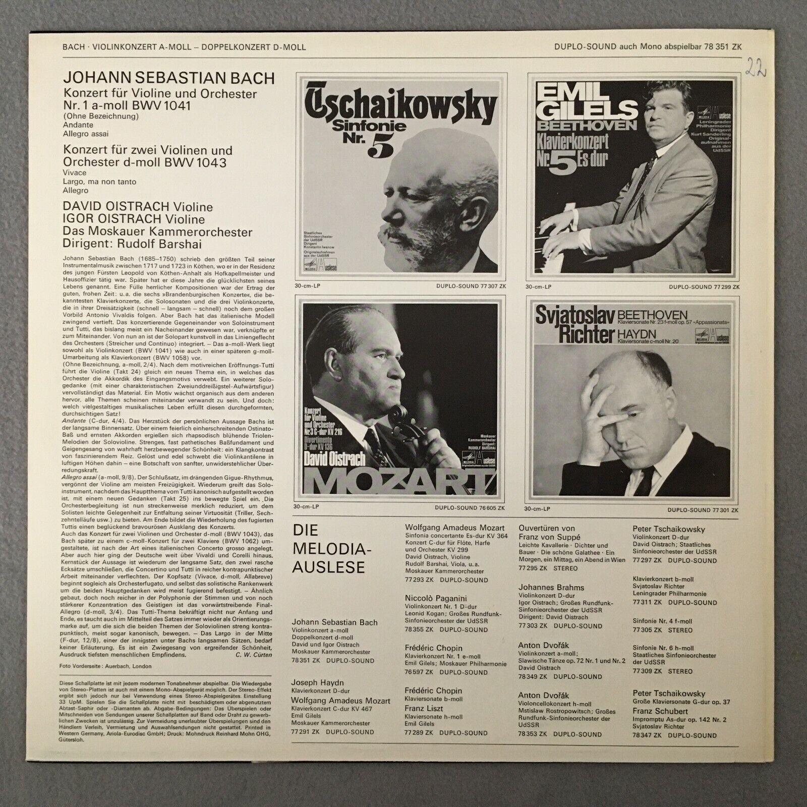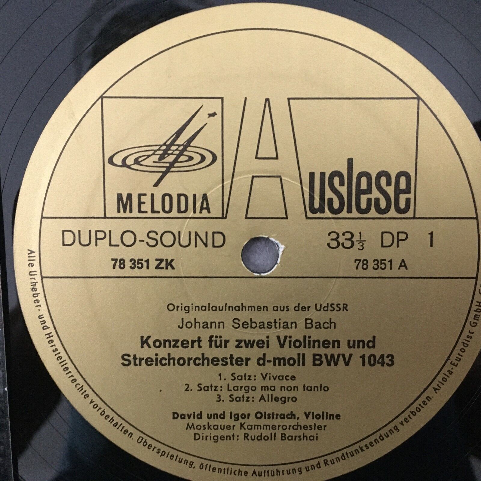 R714 Bach Violin Concertos D. & I. Oistrakh Barshai Melodiya 78 351 ZK Duplo
