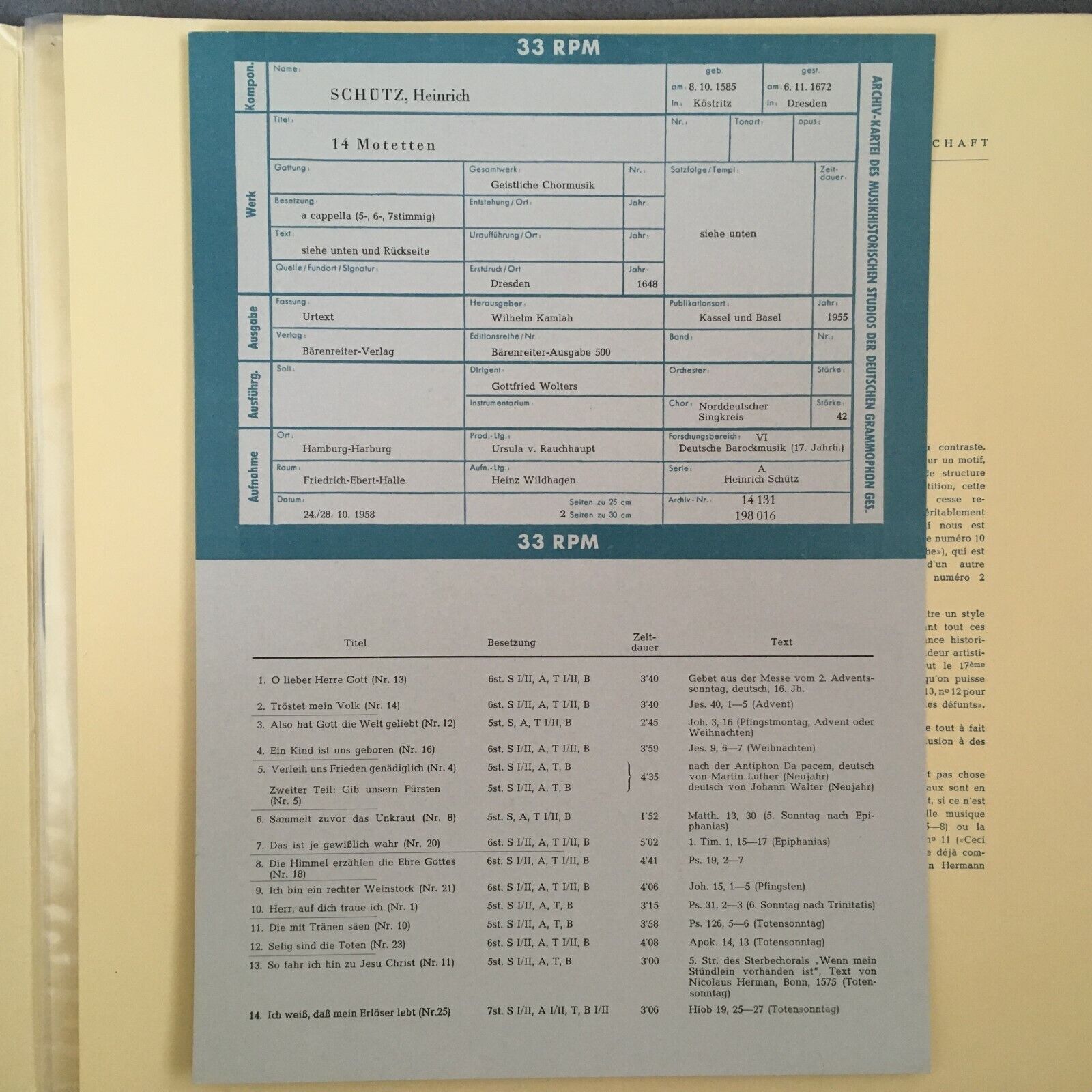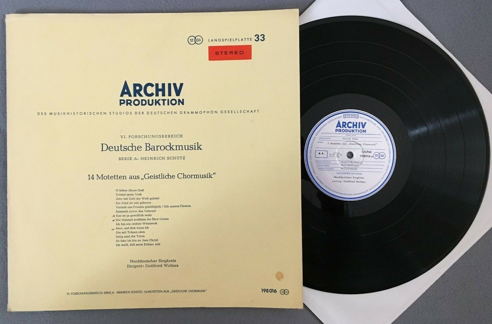Z432 Schütz 14 Motets German Baroque Music Wolters Archiv DGG 198 016 Red Stereo