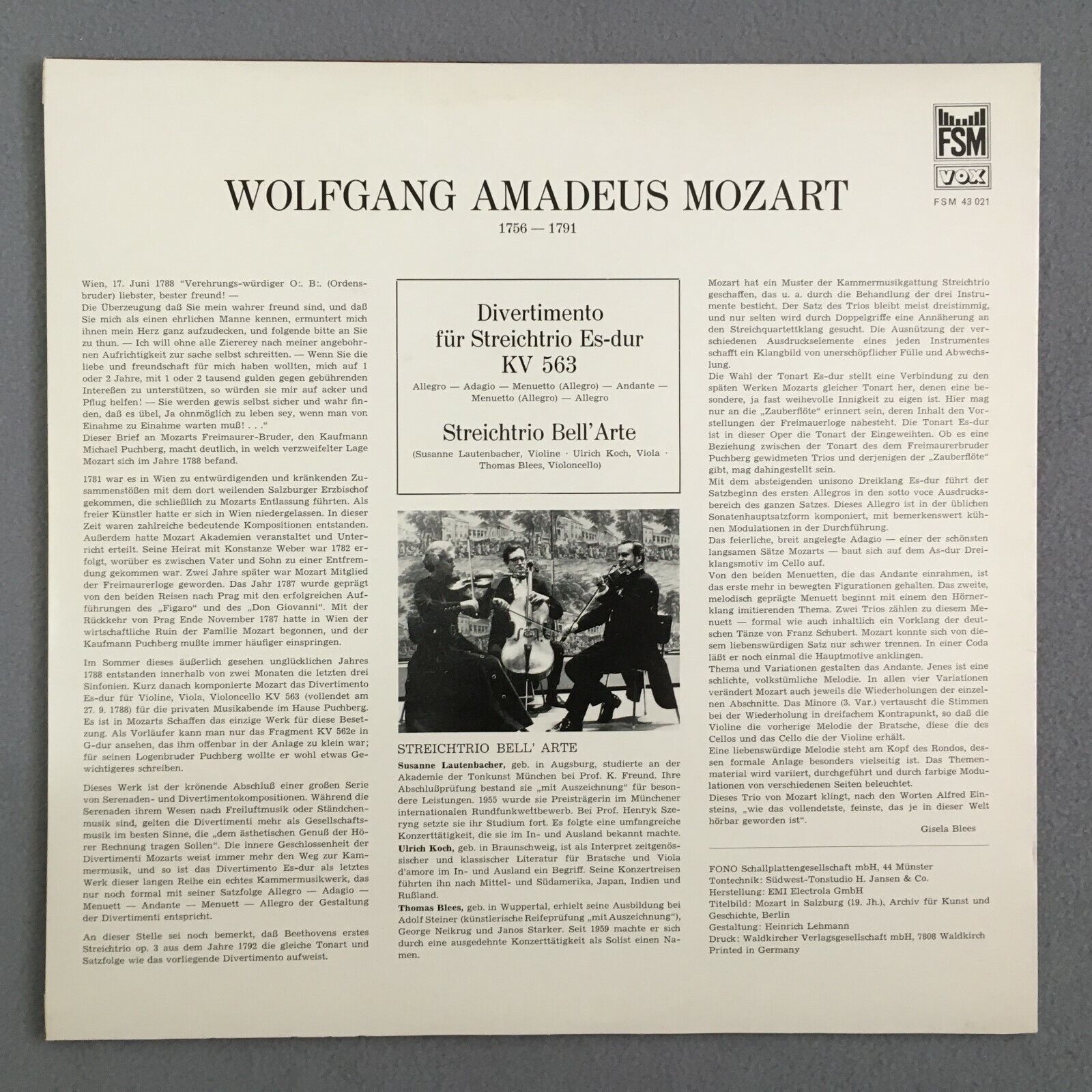Z410 Mozart Divertimento String Trio Bell´Arte Lautenbacher FSM 43 021 Stereo