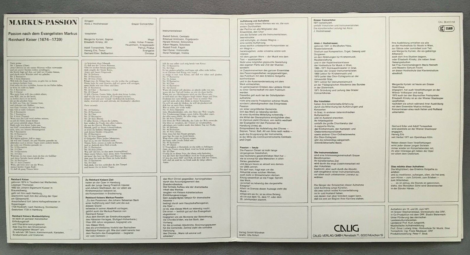 Z396 Keiser Markus Passion Erb Eder Hochstrasser 2LP Calig CAL 30 417/18 Stereo