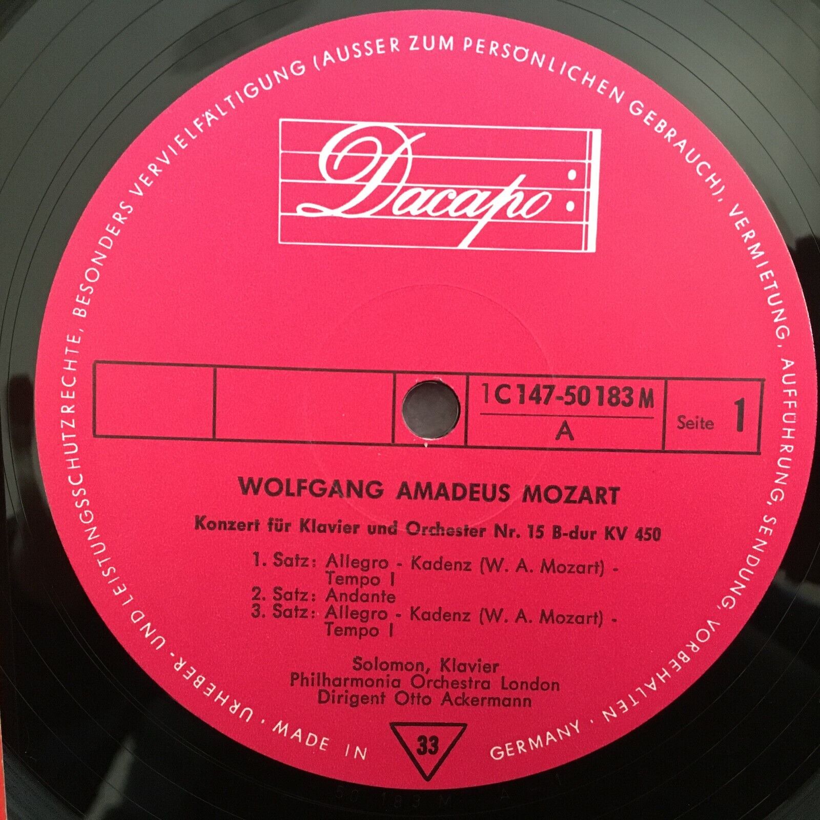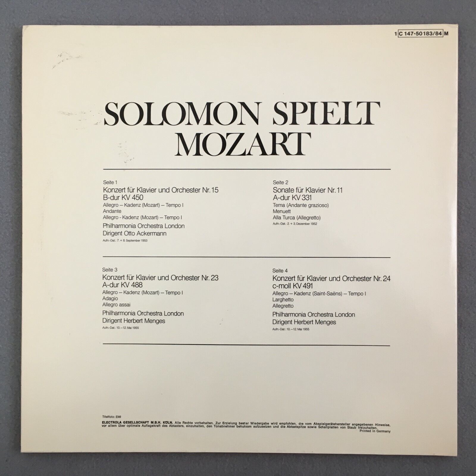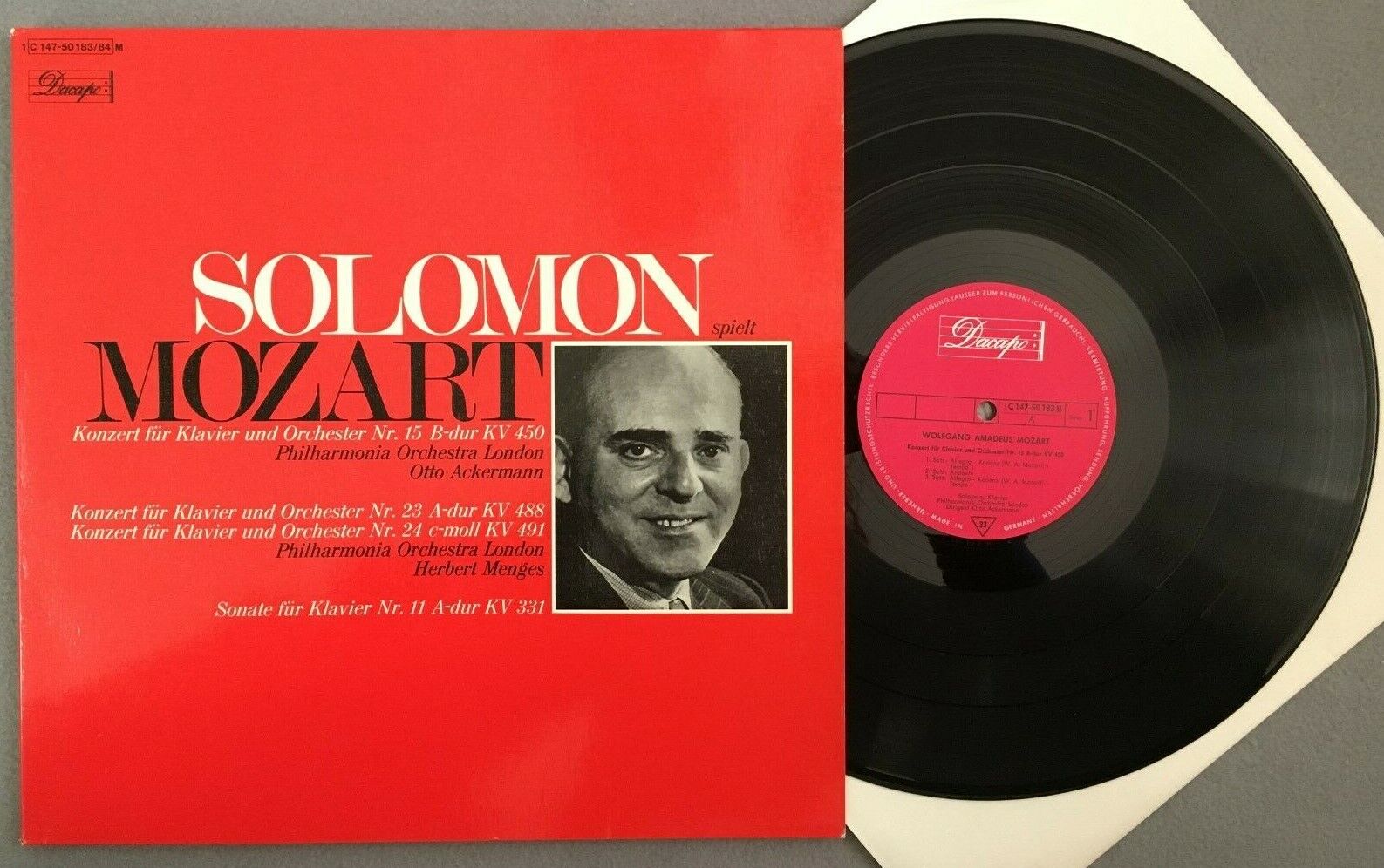Z491 Mozart Piano Concertos Solomon Ackermann 2LP Dacapo 1 C 147-50 183/84 M