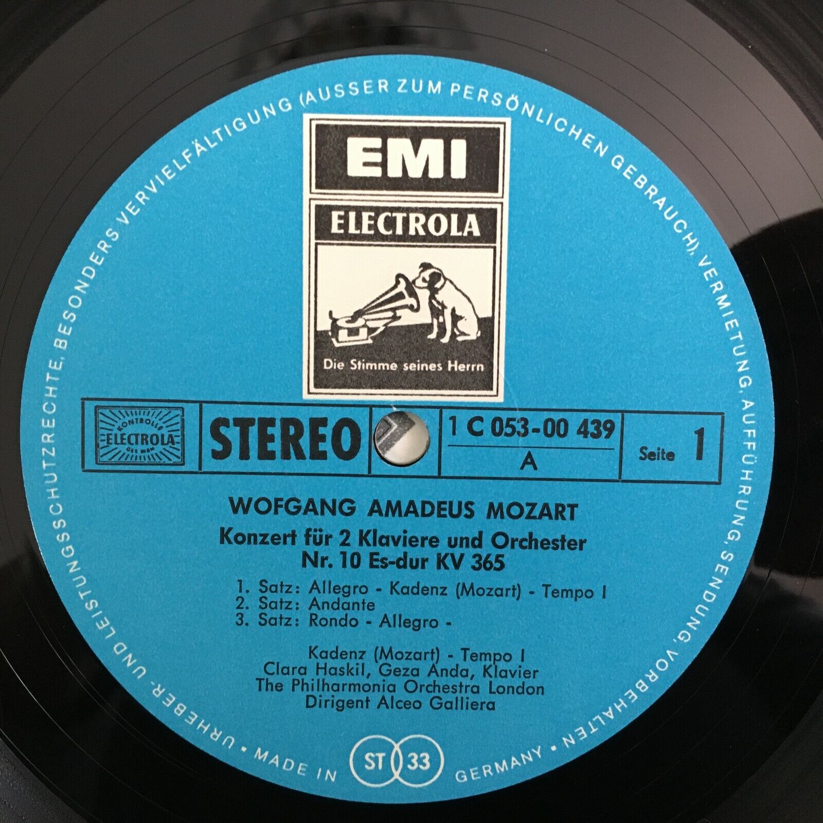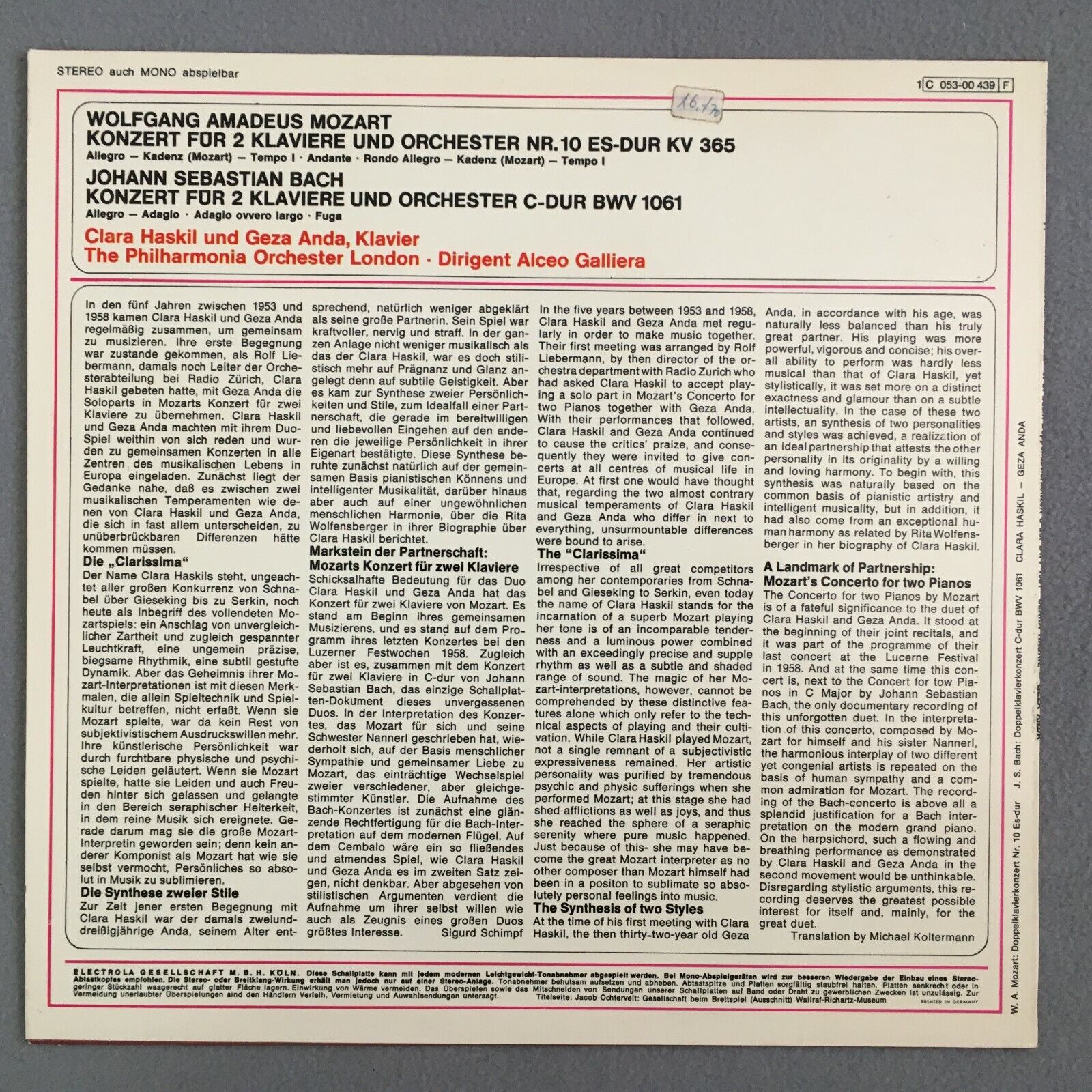 Z423 Mozart Bach Piano Concertos Haskil Anda Galliera LPO EMI 1 C 053-00 439 St