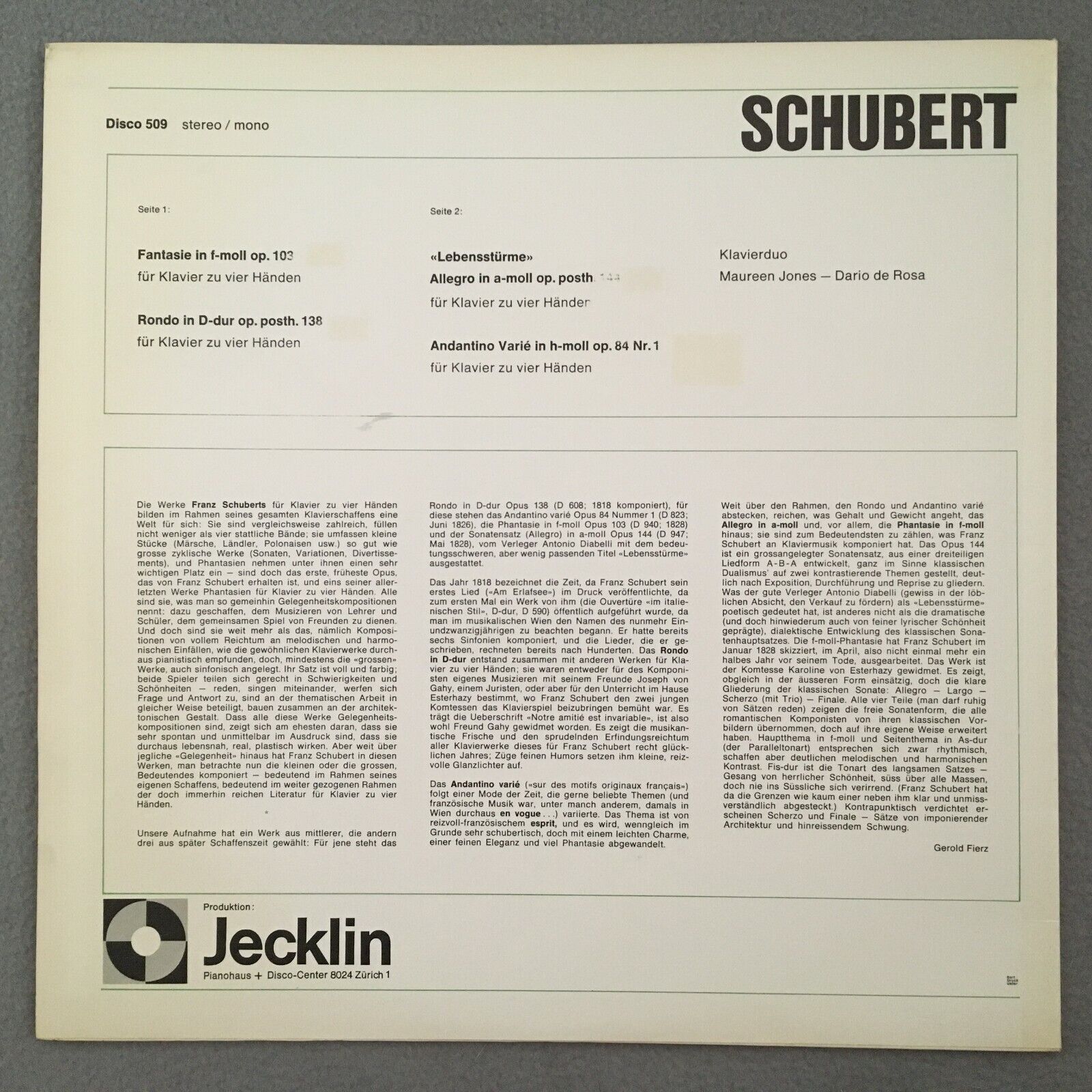 R772 Schubert Fantasy Rondo Piano Duo Jones de Rosa Jecklin Disco 509 Stereo
