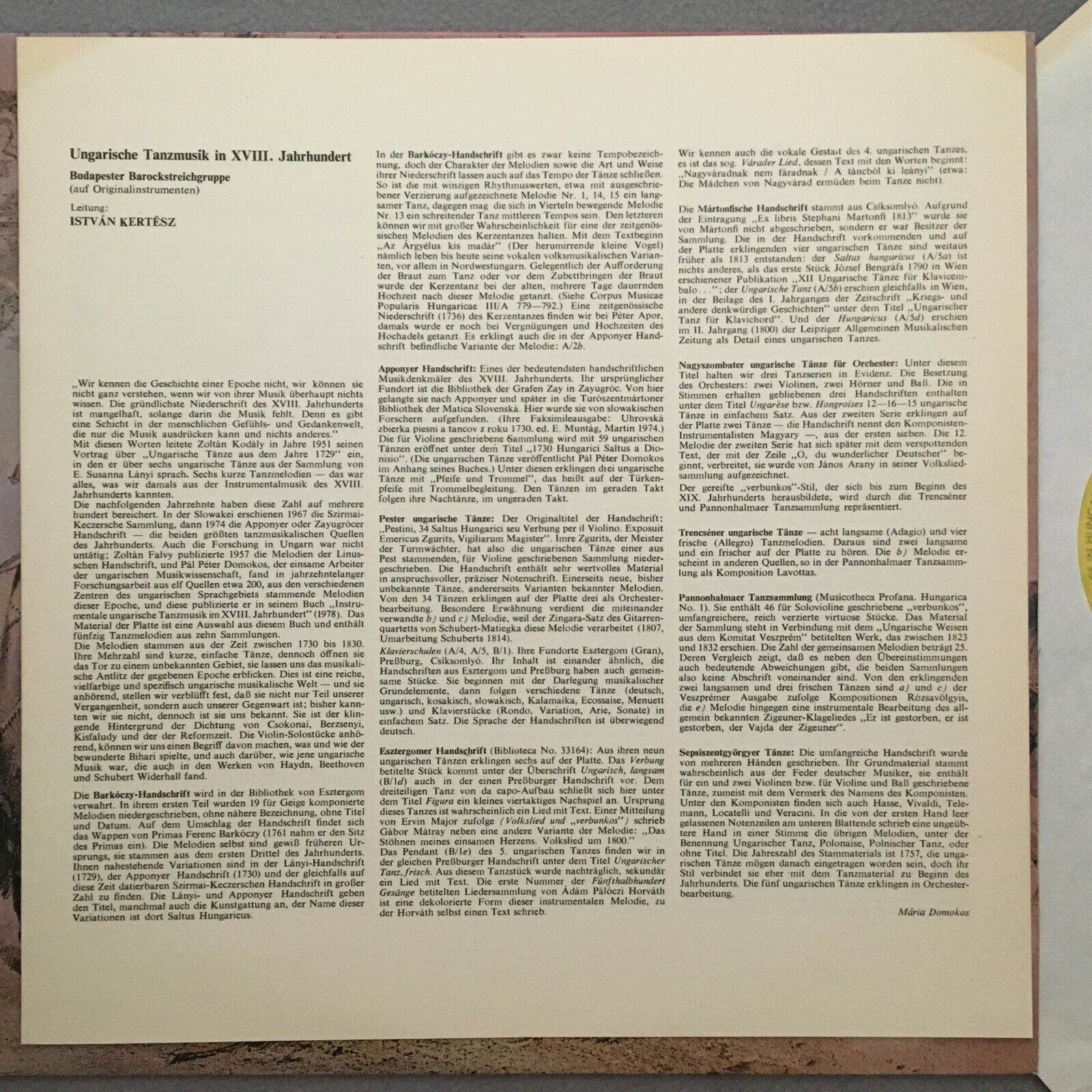 R794 Dance Music from Hungary 18th Century Kertesz Hungaroton SLPD 12445 Stereo