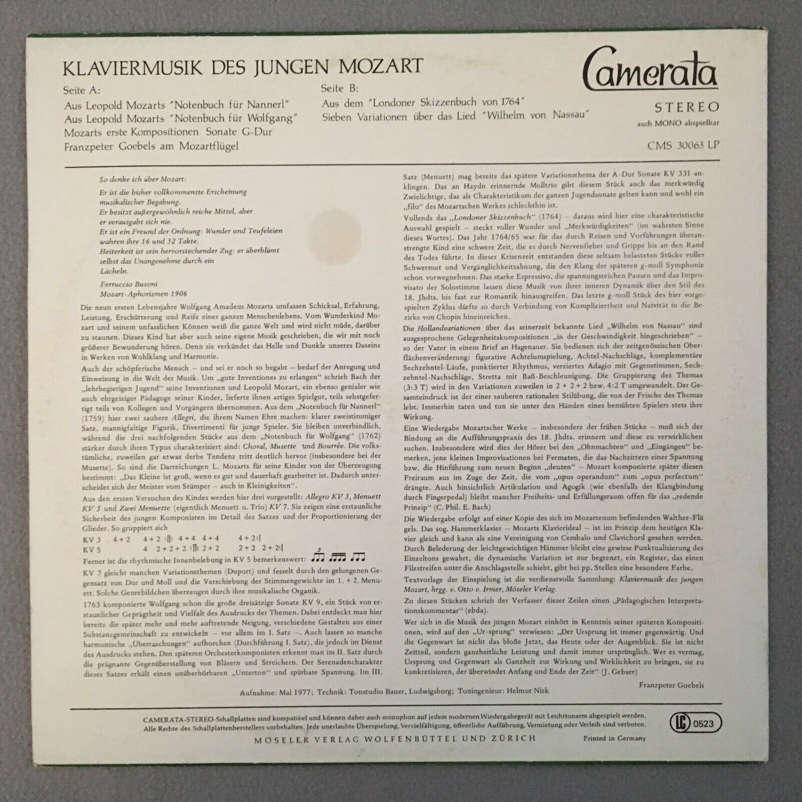 R813 The Young Mozart Piano Music Goebels Camerata CMS 30063 LP Stereo