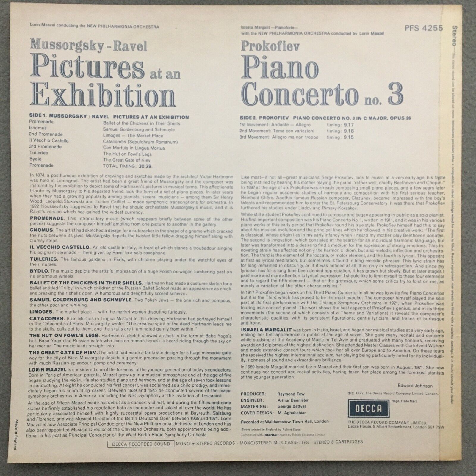 R832 Ravel Pictures at an Exhibition Margalit Maazel DECCA PFS 4255 Stereo PROMO