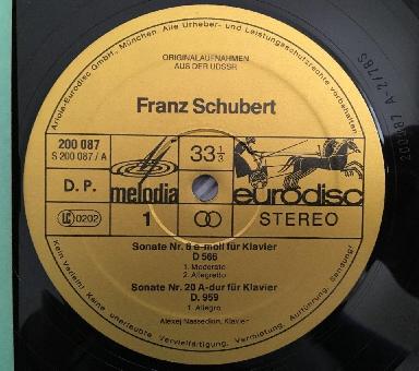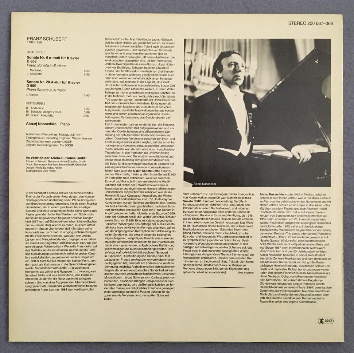 P369 Schubert Piano Sonatas No.6 & No.20 Nassedkin Eurodisc 200 087-366 Stereo